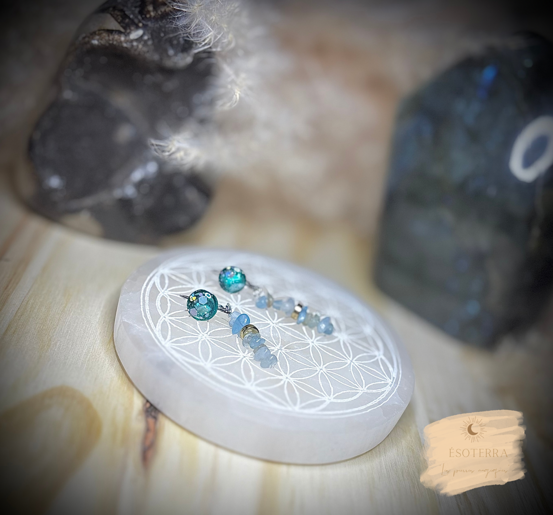 Ce soin transmettra une vibration de libération, vérité et douceur au bijou. Il soutiendra la personne qui le portera dans sa capacité à communiquer avec bienveillance, à dire sa vérité, à oser être elle-même avec clarté et calme.