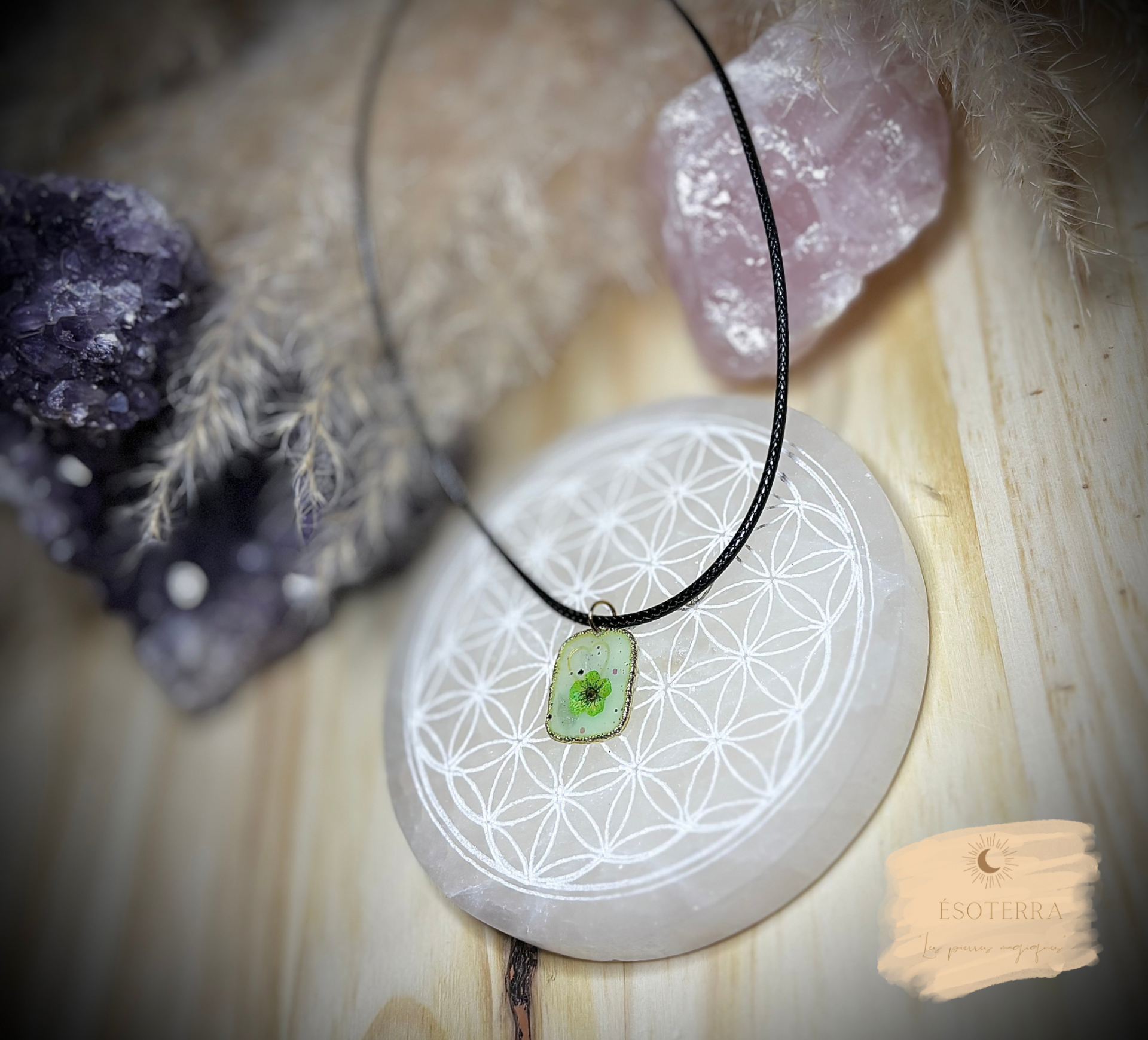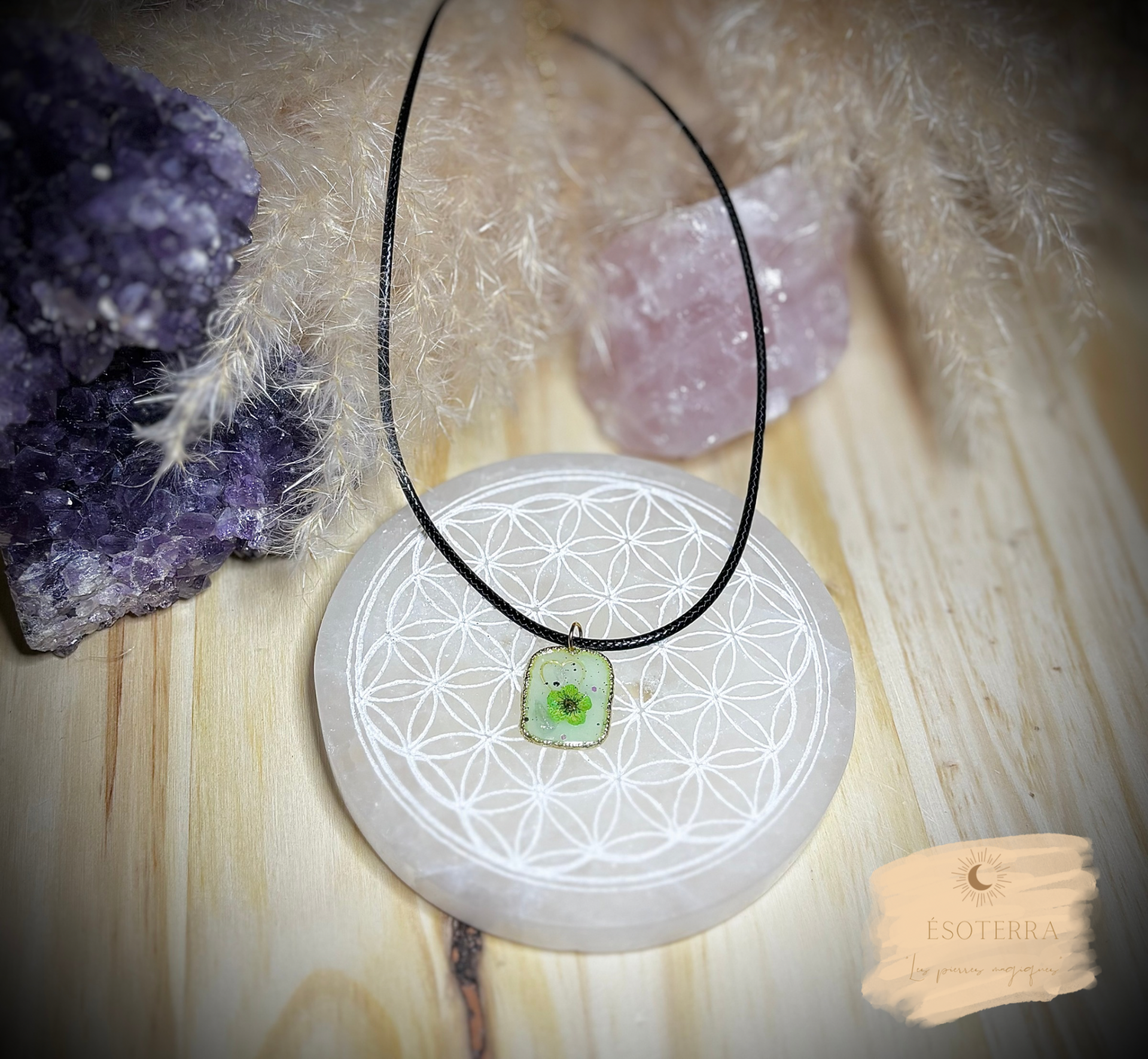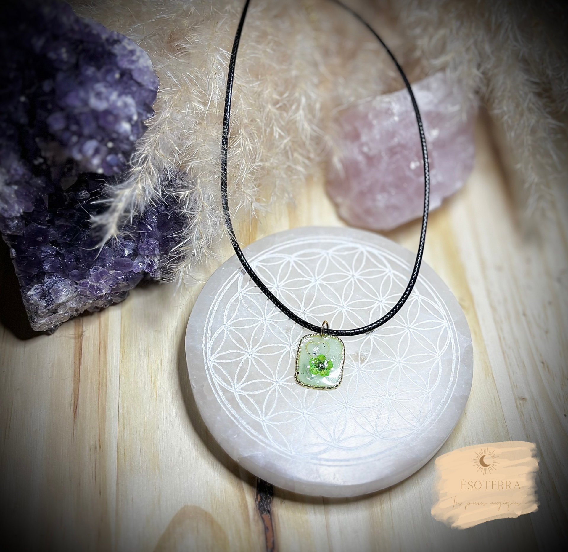 Pendentif fait main en résine Epoxy couleur Doré non acier inoxydable. Avec cordon en synthétique noir. ( éviter les douches, bains et le parfum directement dessus )