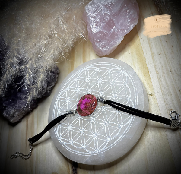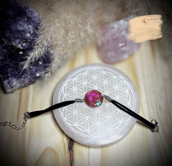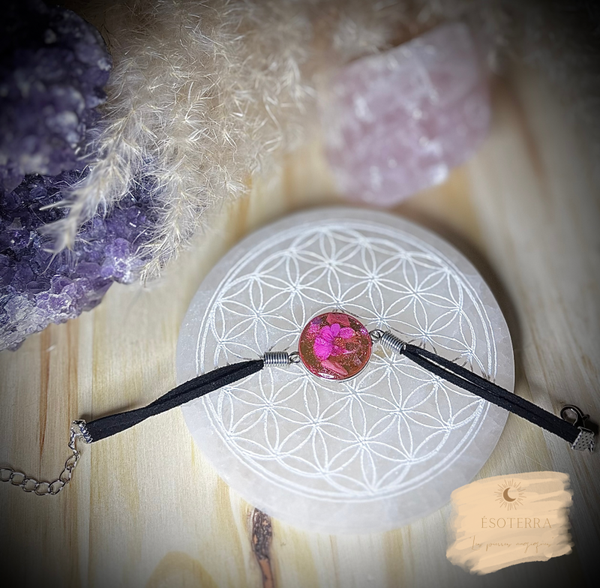 Dans LE BIJOU, vous y trouverez des pierres ( Quartz rose, rhodonite &/ou Aventurine verte ), des paillettes, une couleur translucide, des fleurs séchées ou objets miniatures si la place le permet, tout cela associés au chakra correspondant au bijou.
