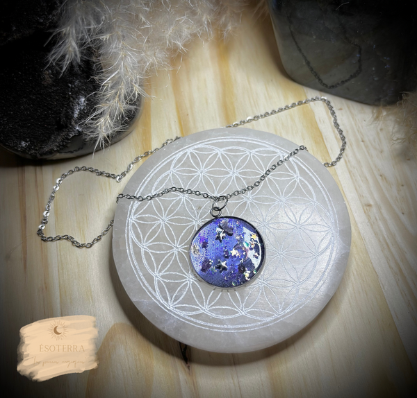 Pendentif fait main en résine Epoxy couleur Argenté en Acier inoxydable.