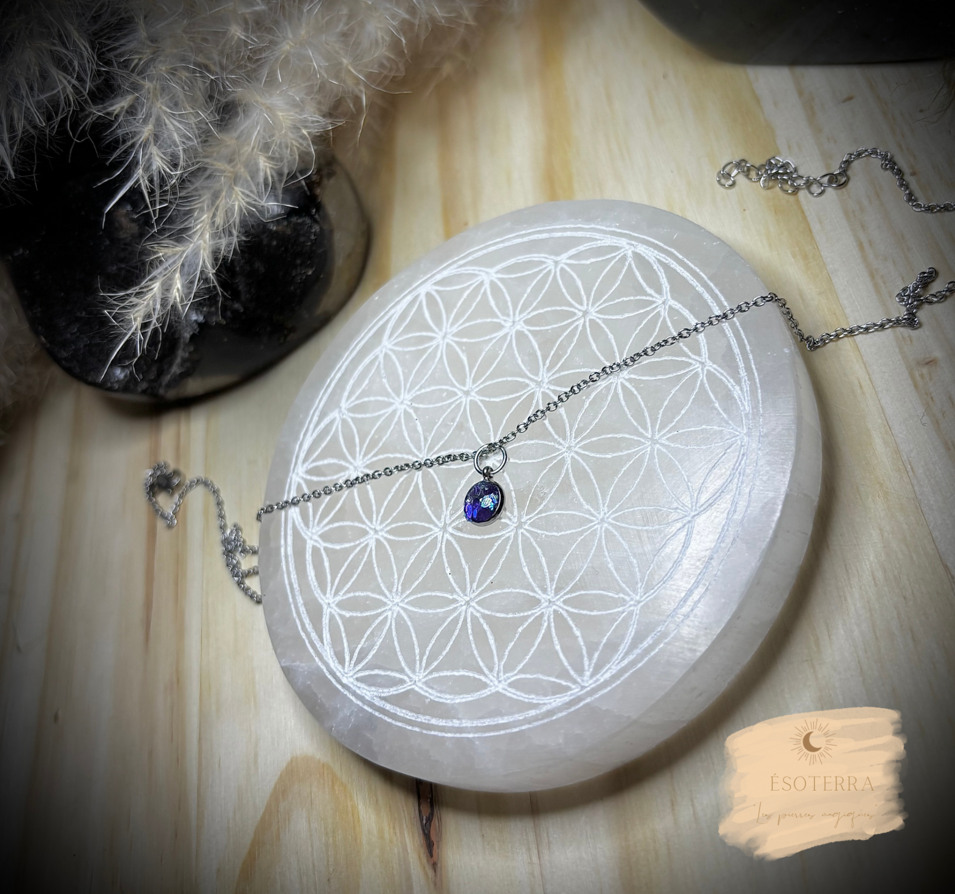 Ce bijou évoquera une porte vers l'invisible, une étoile intérieure ou un miroir du Soi profond. Idéal pour activer l'intuition, l'écoute de soi et la vision claire.