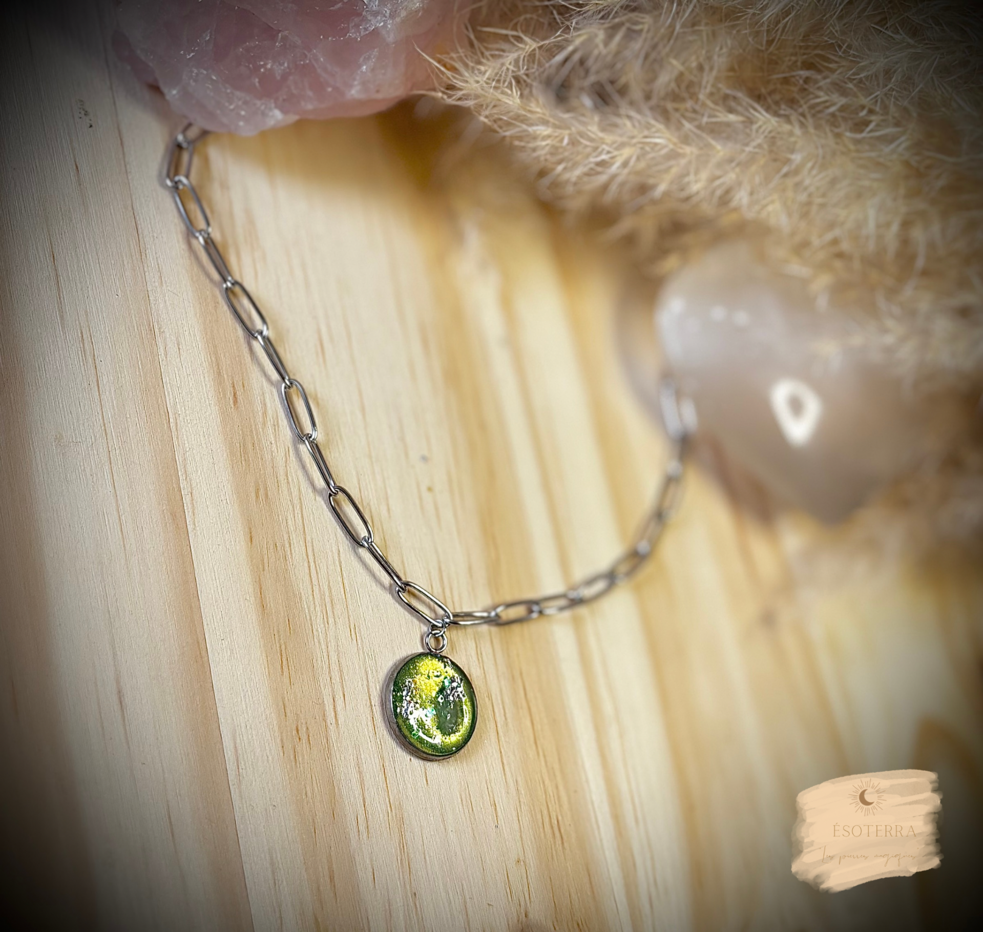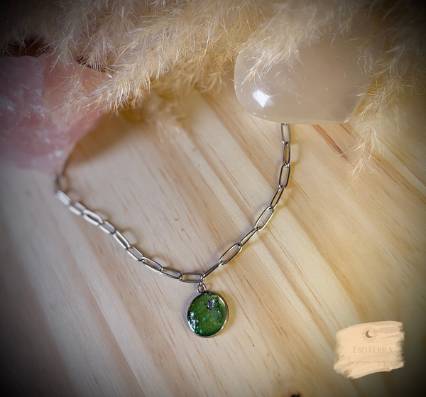 Pendentif fait main en résine Epoxy couleur Argenté en Acier inoxydable.