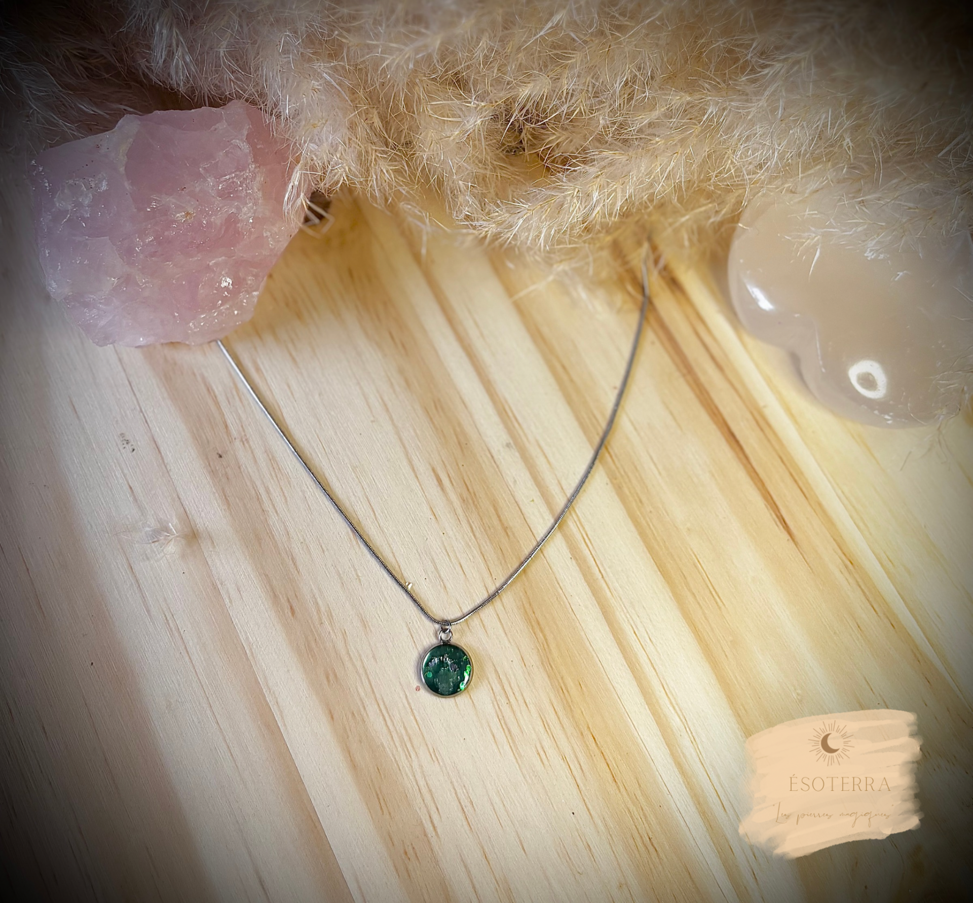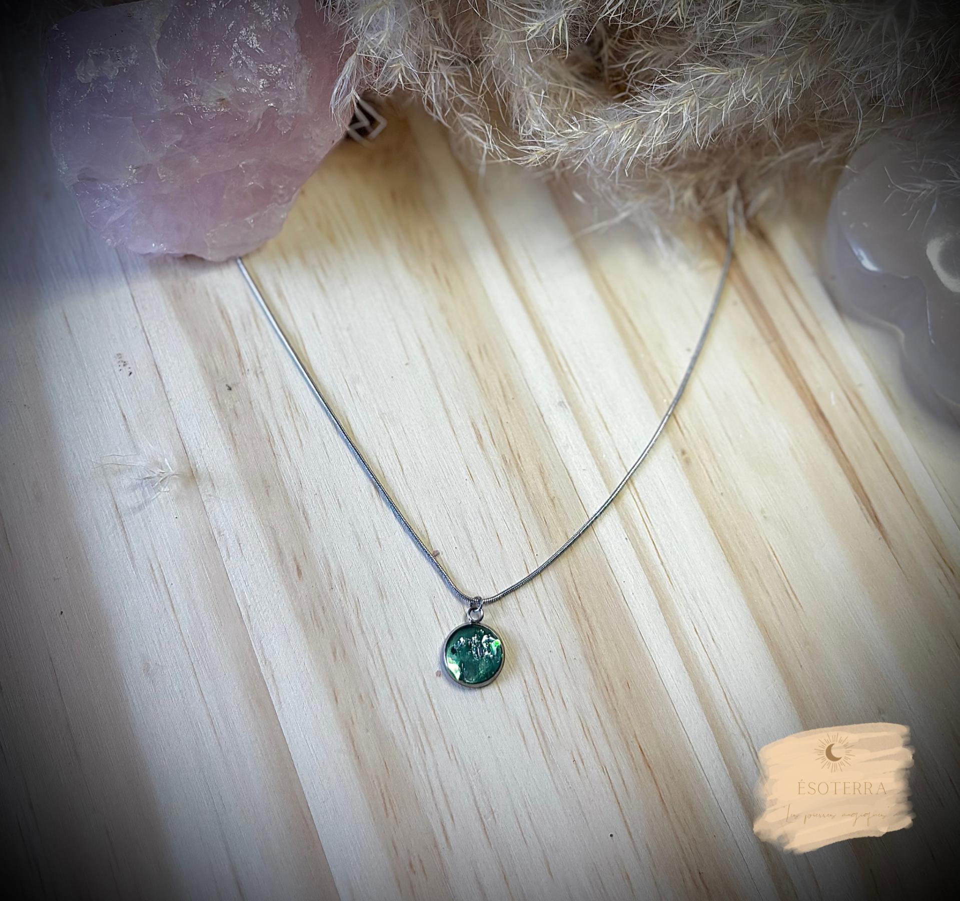 Pendentif fait main en résine Epoxy couleur Argenté en Acier inoxydable.