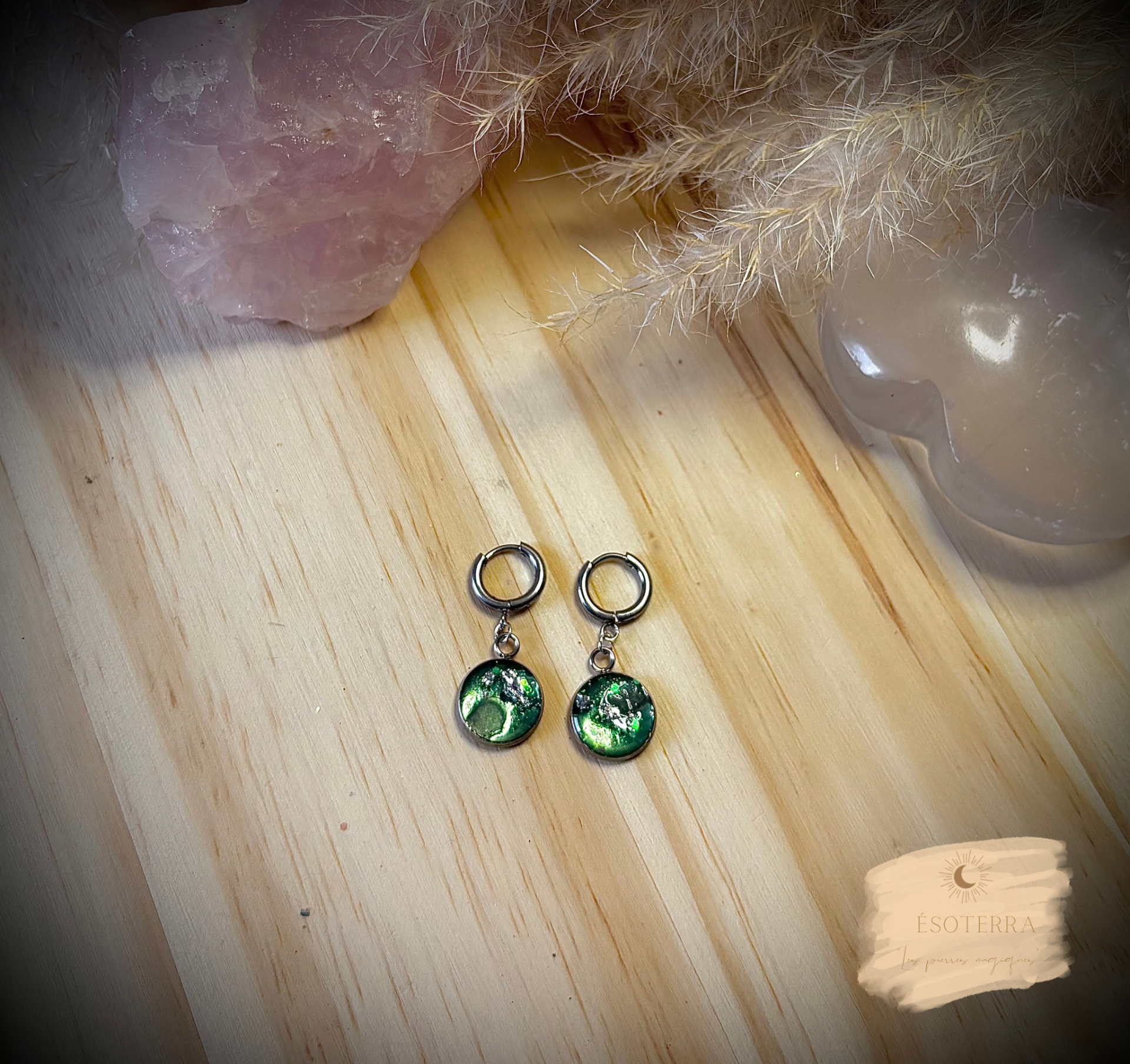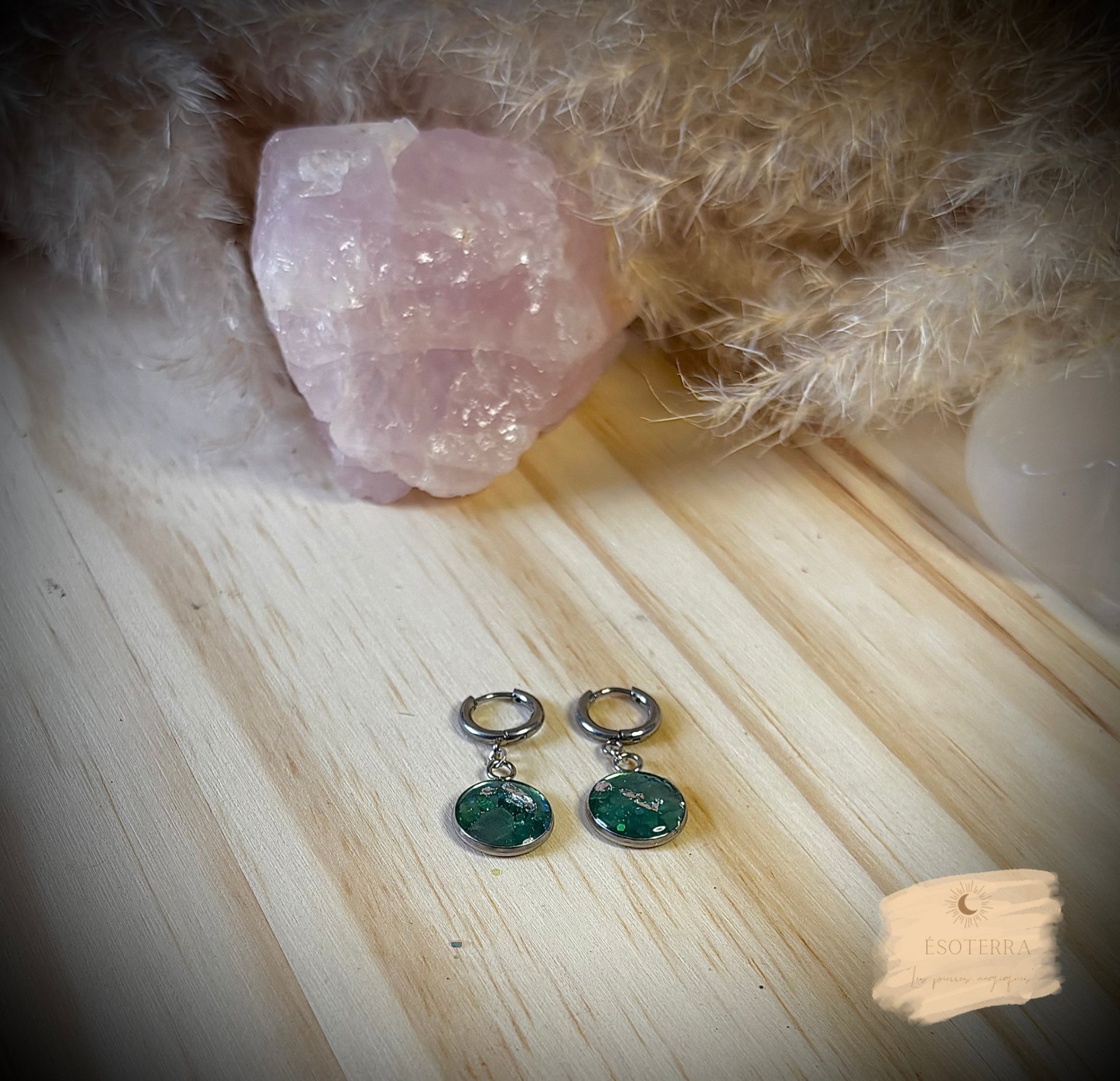Boucles d'oreilles fait main en résine Epoxy couleur Argenté en Acier inoxydable.