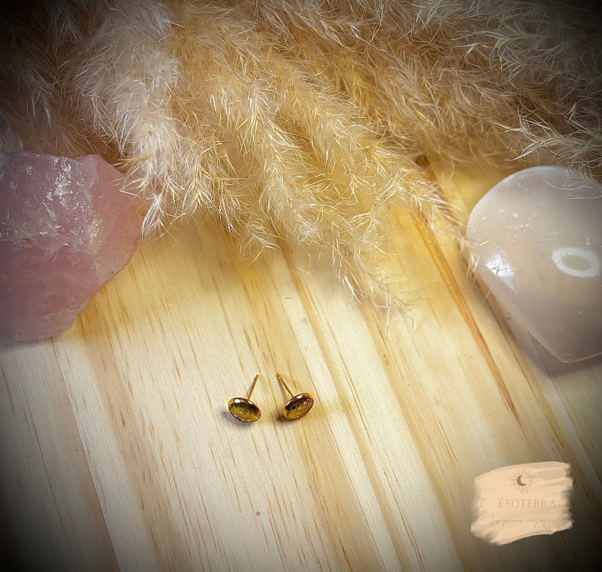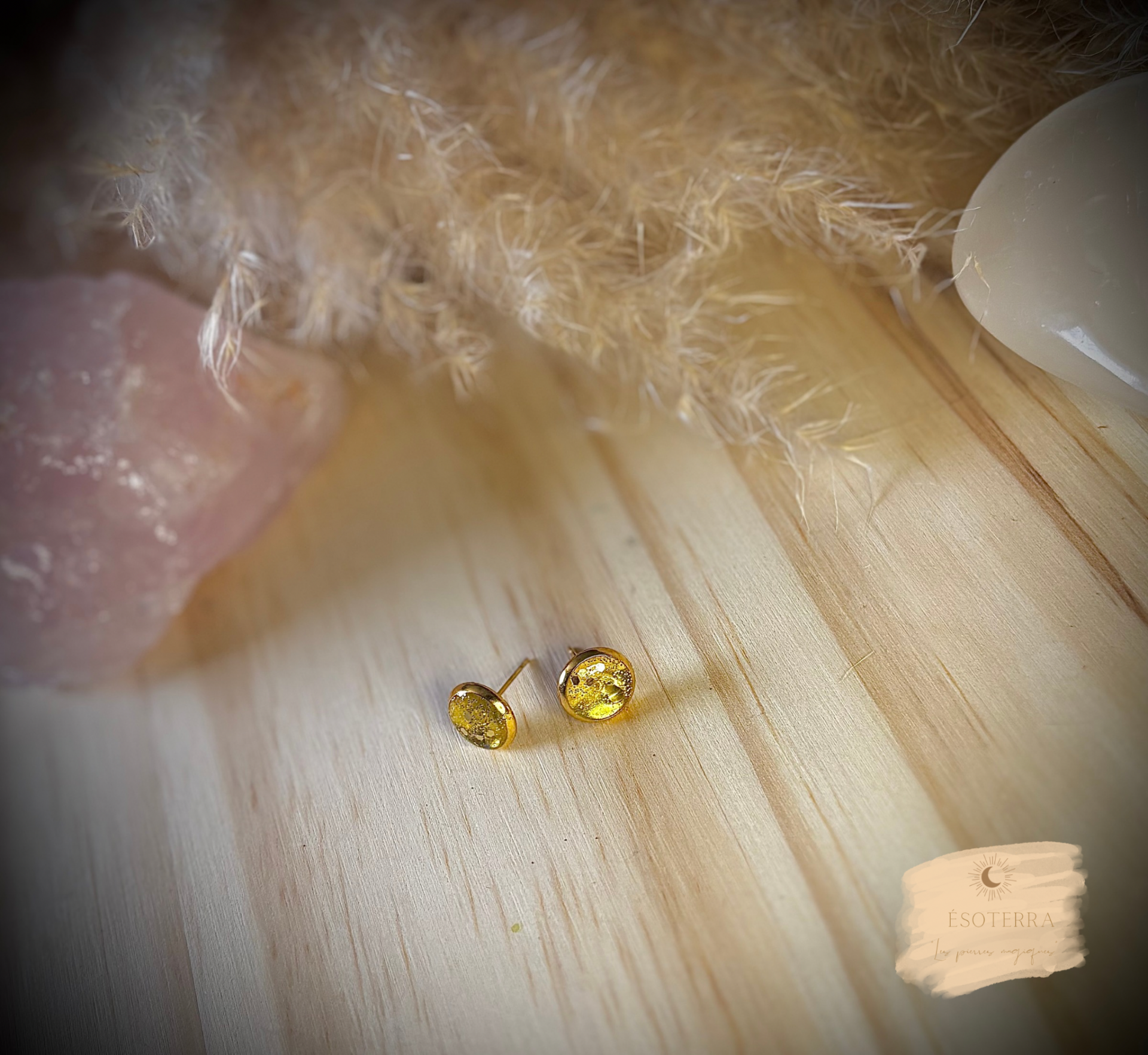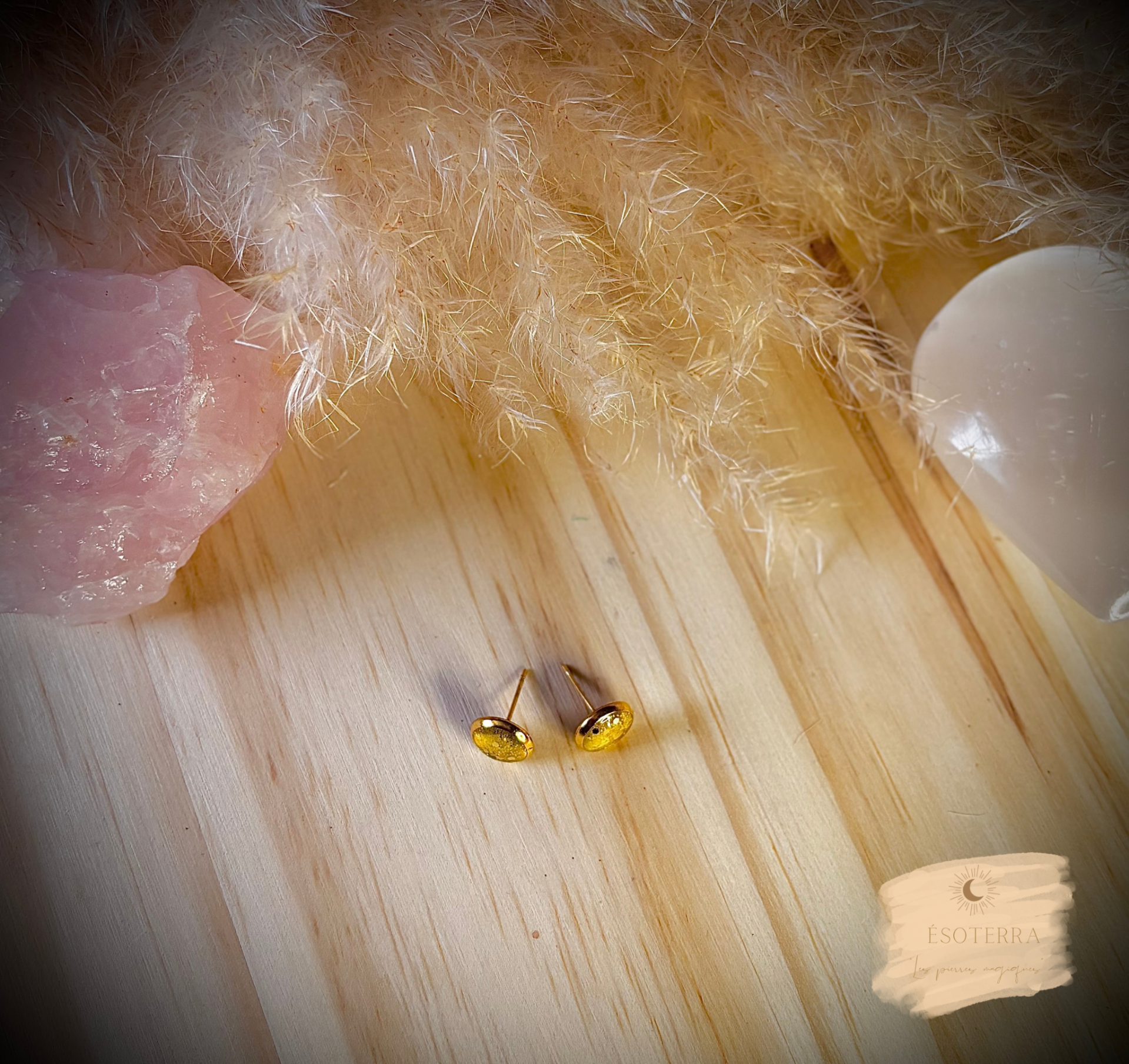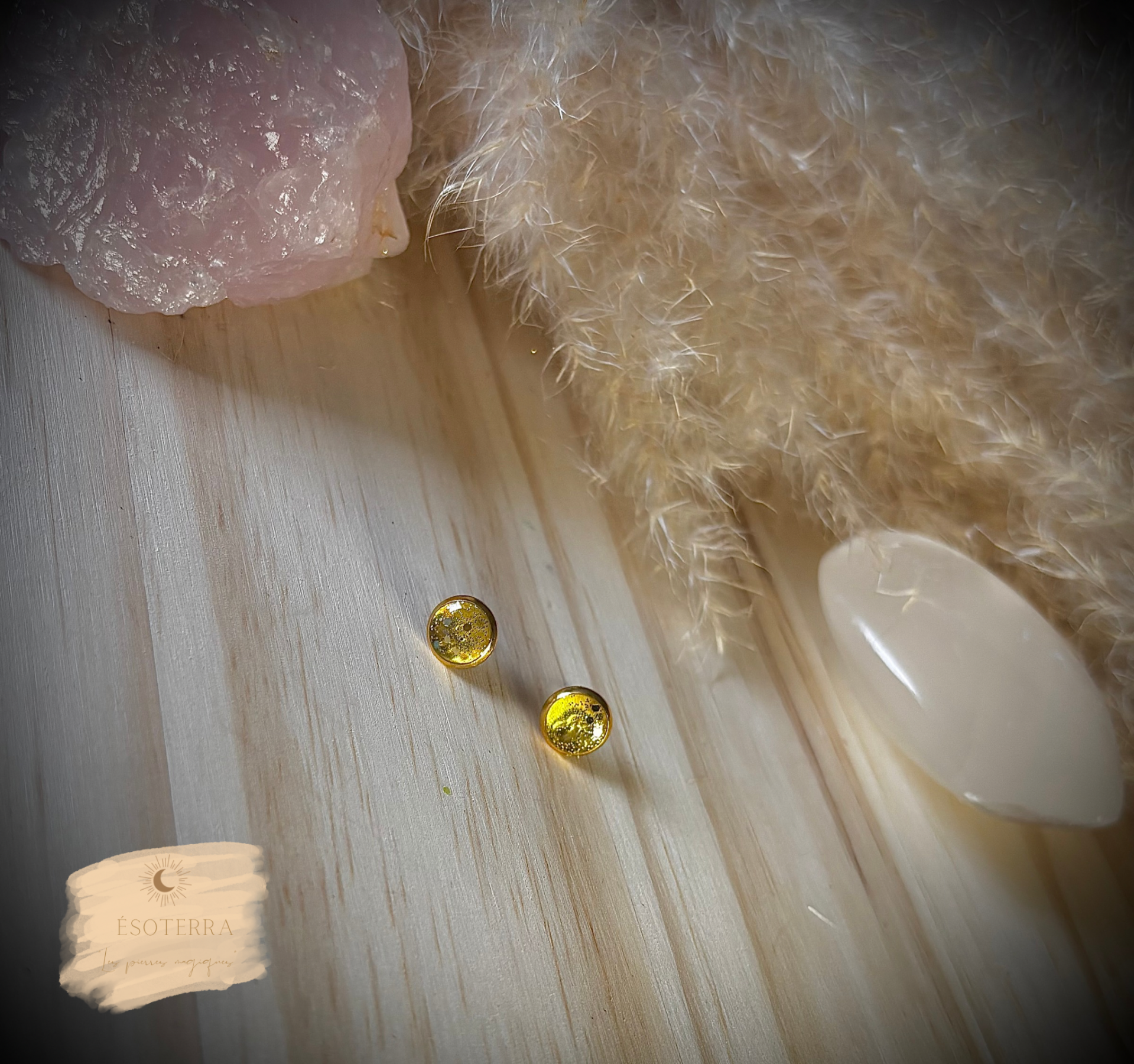 Boucles d'oreilles fait main en résine Epoxy couleur Doré en acier inoxydable.