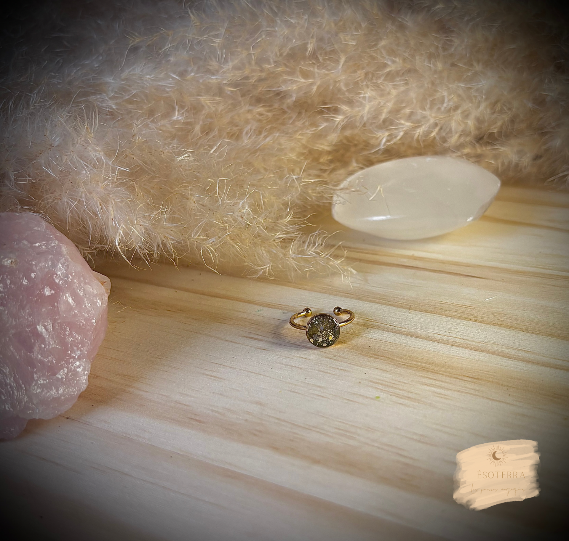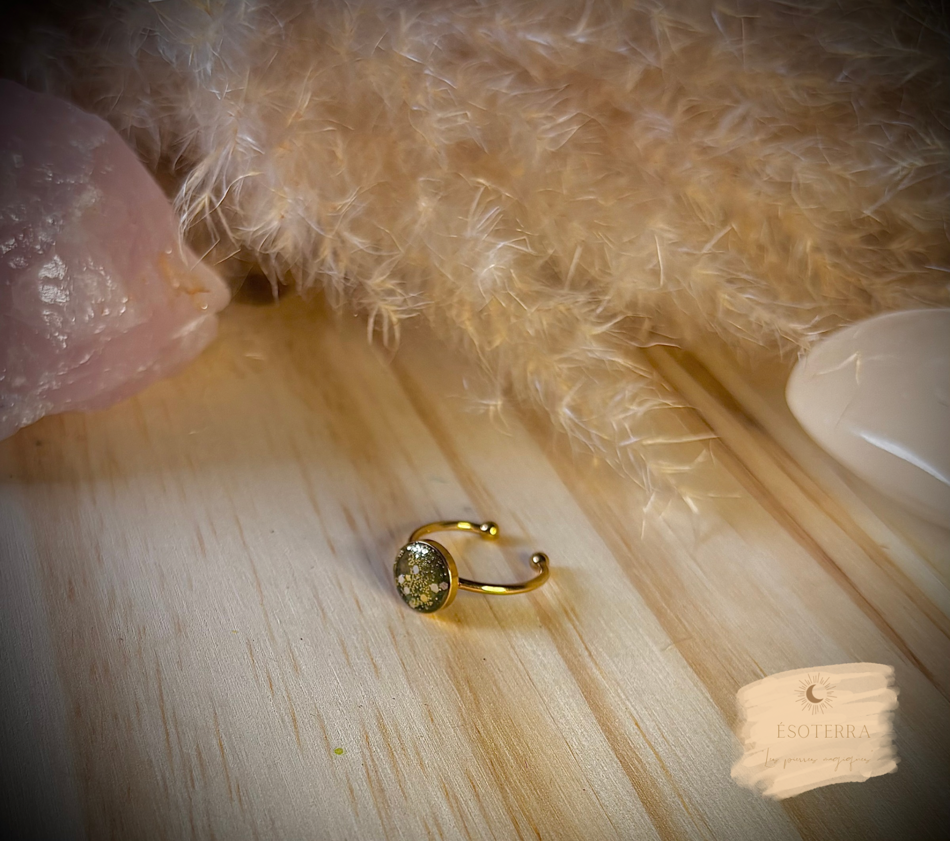 Bague fait main en résine Epoxy couleur Doré en Acier inoxydable.