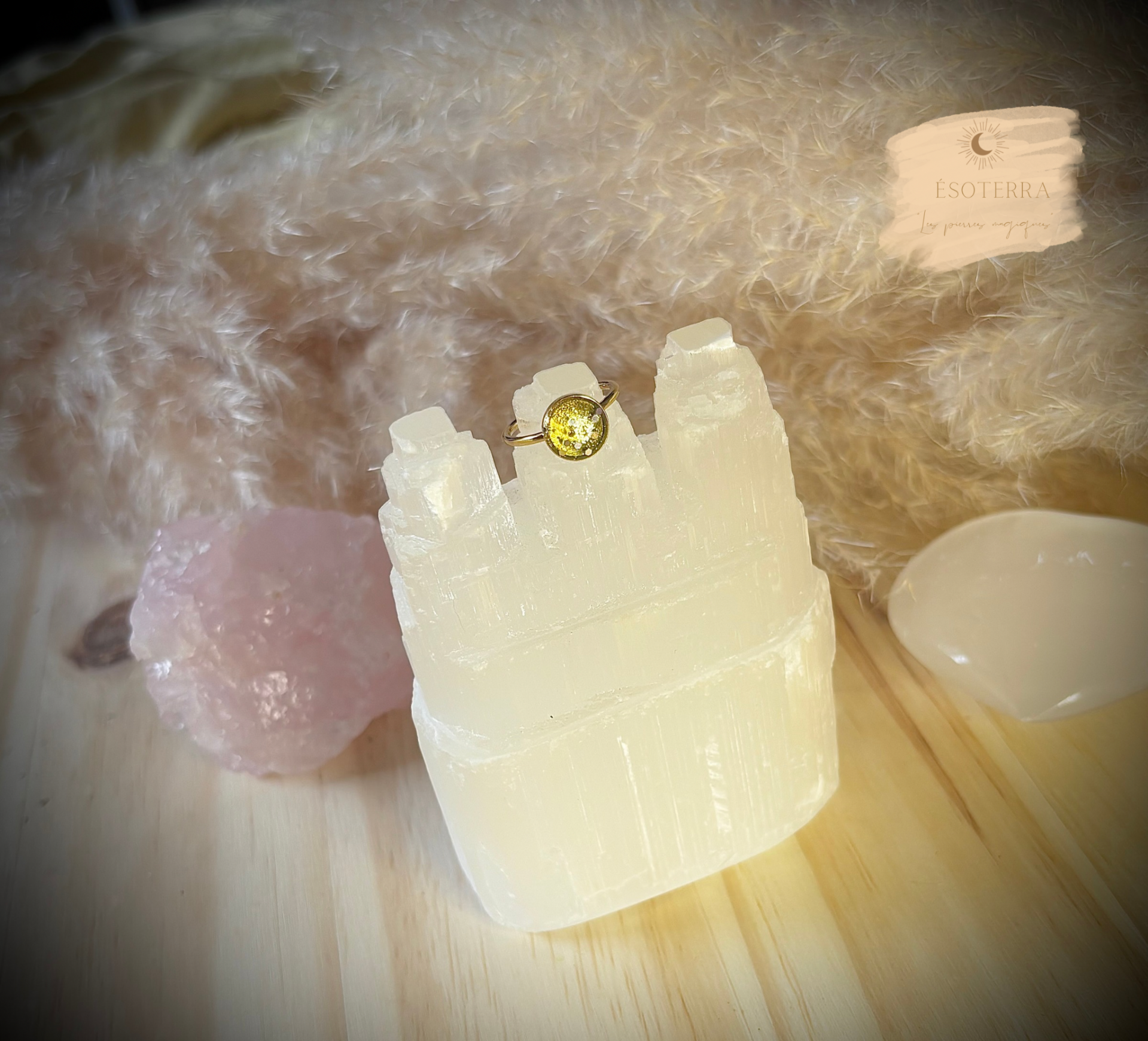 Que ce bijou porteur de lumière solaire transmette force, affirmation, estime de soi, qu'il active le feu sacré intérieur de la personne qui le portera, qu'il l'aide à rayonner, à oser, à s'affirmer dans sa pleine lumière.