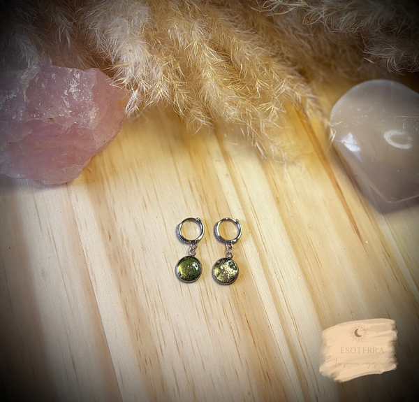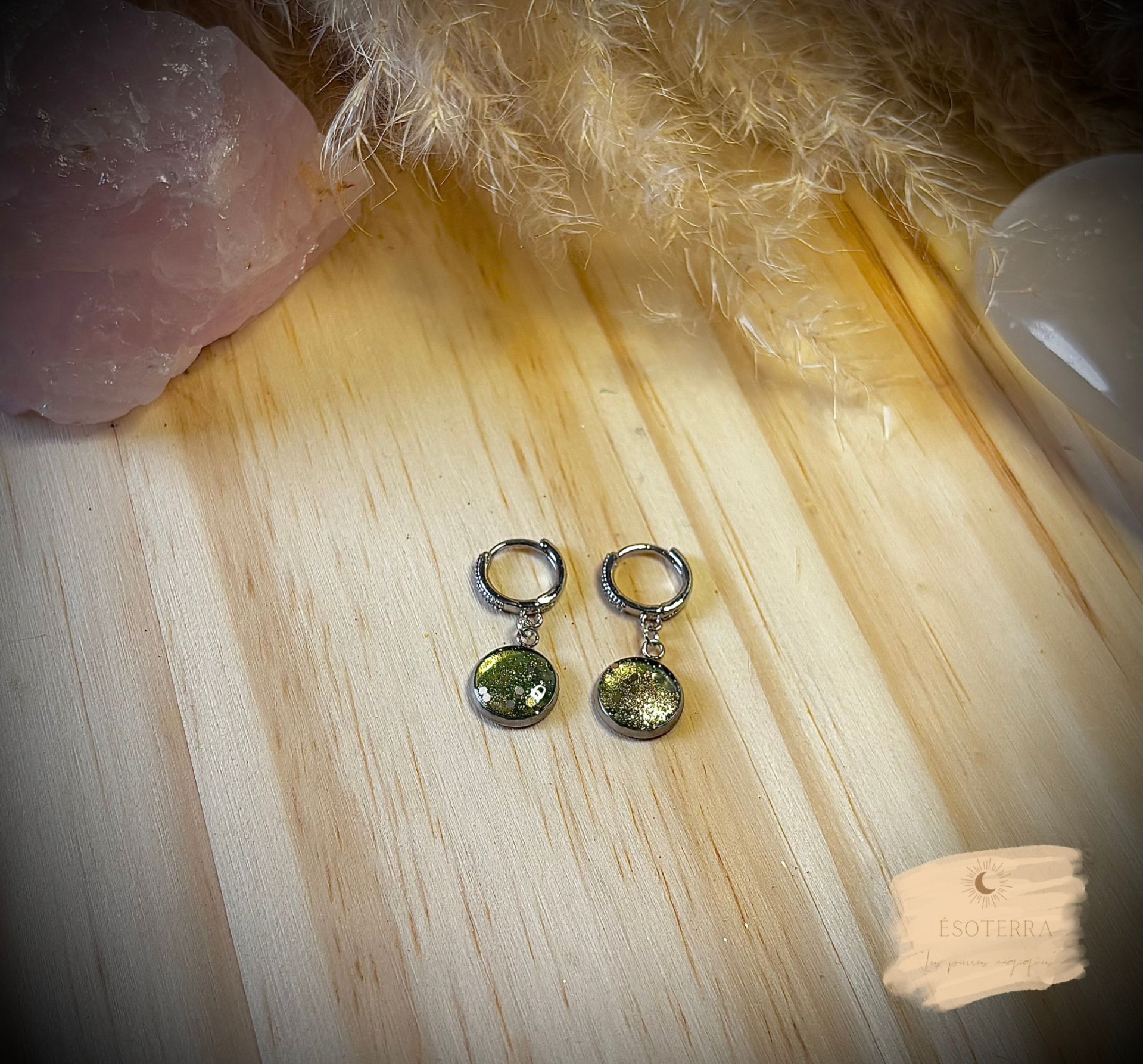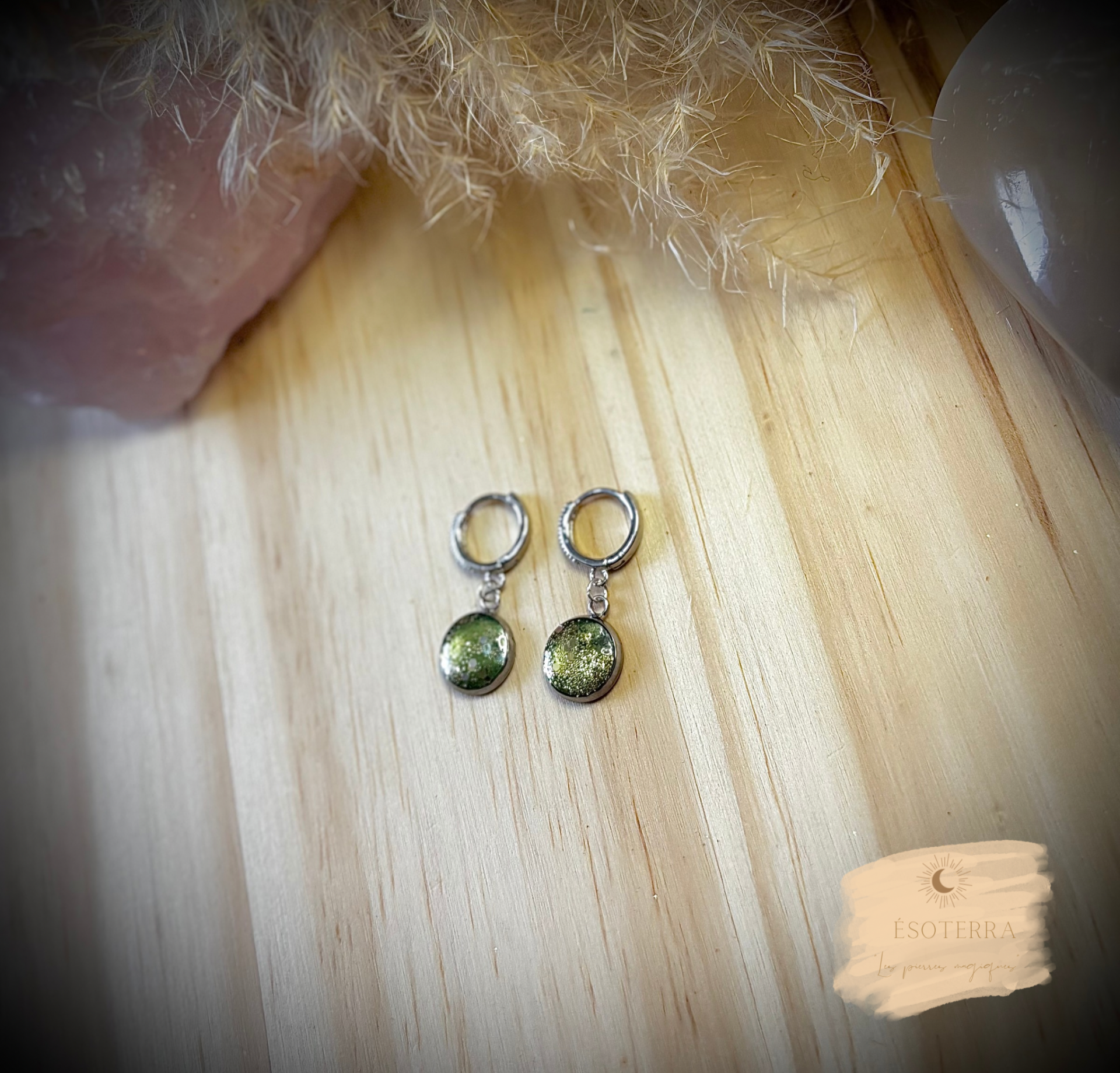 Boucles d'oreilles fait main en résine Epoxy couleur Argenté en acier inoxydable.