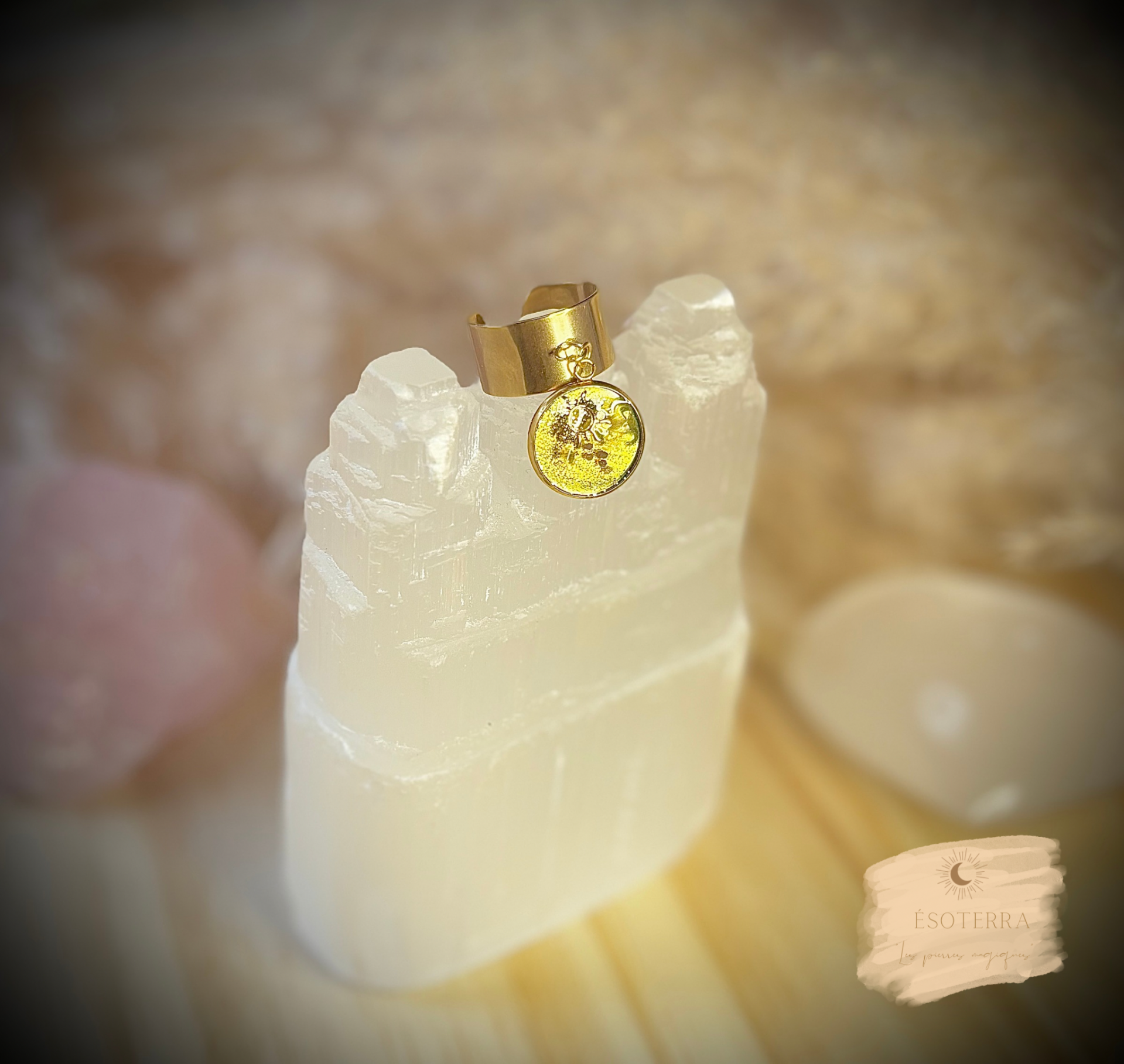 Que ce bijou porteur de lumière solaire transmette force, affirmation, estime de soi, qu'il active le feu sacré intérieur de la personne qui le portera, qu'il l'aide à rayonner, à oser, à s'affirmer dans sa pleine lumière.
