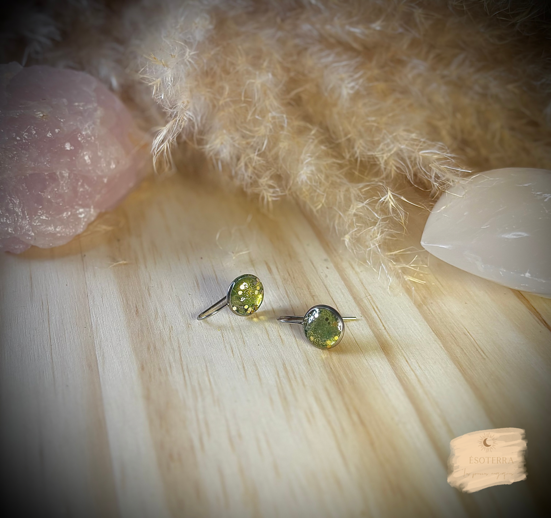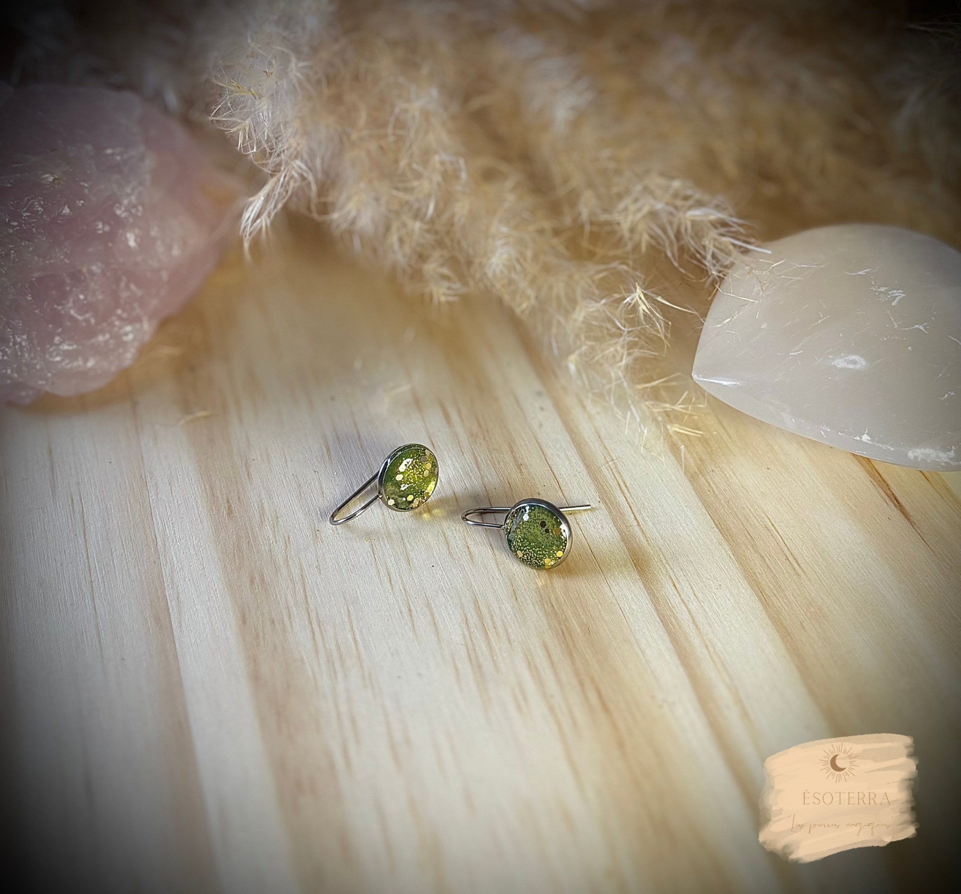 Boucles d'oreilles fait main en résine Epoxy couleur Argenté en acier inoxydable.