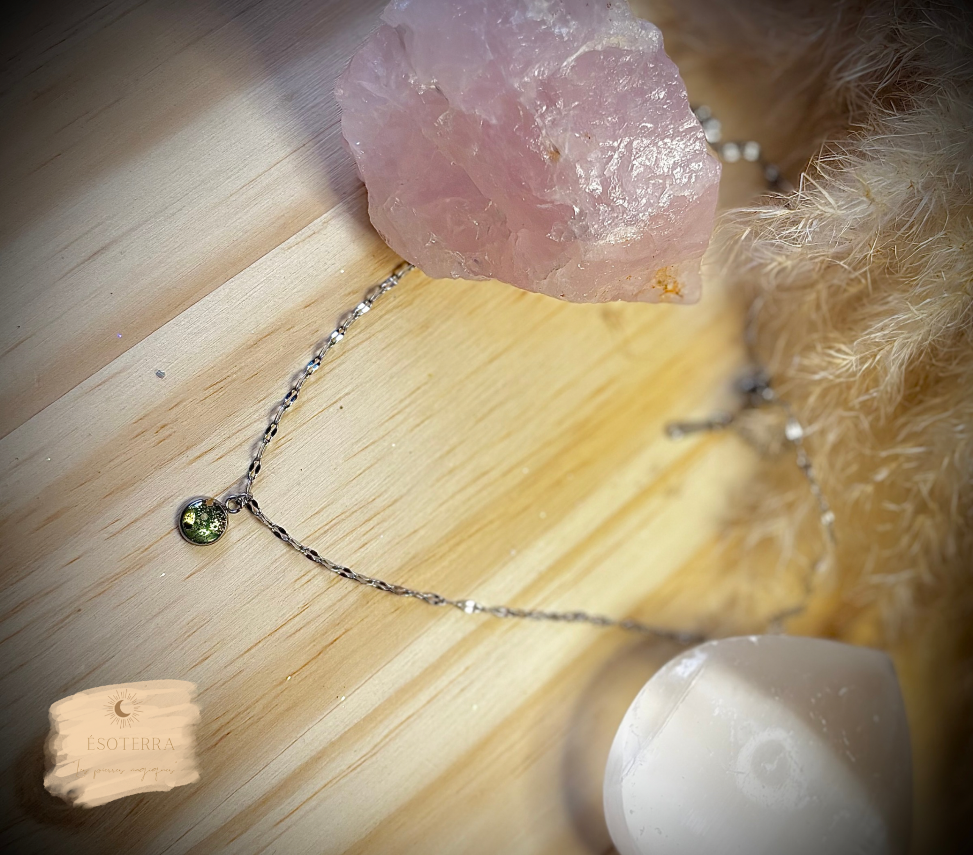 Pendentif fait main en résine Epoxy couleur Argenté en acier inoxydable.