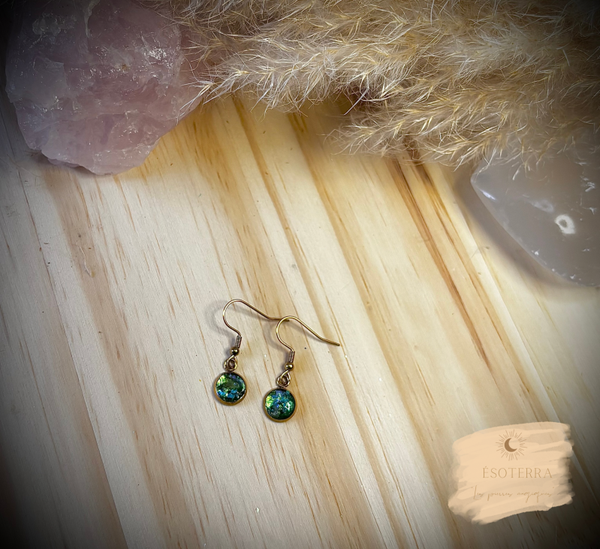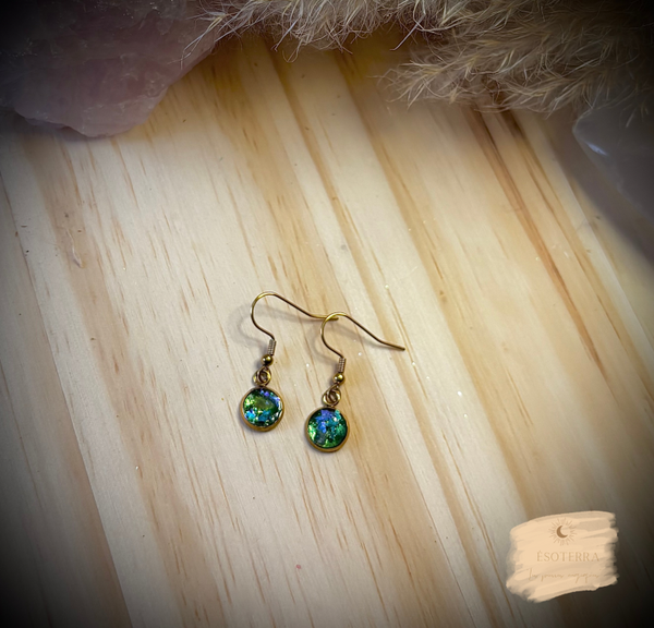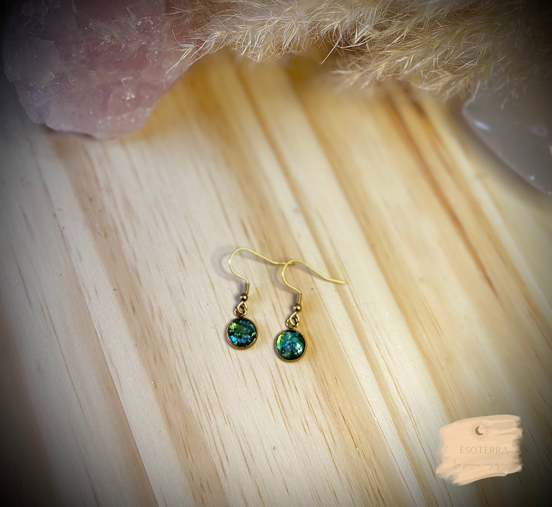 Boucles d'oreilles fait main en résine Epoxy couleur Doré en Acier inoxydable.