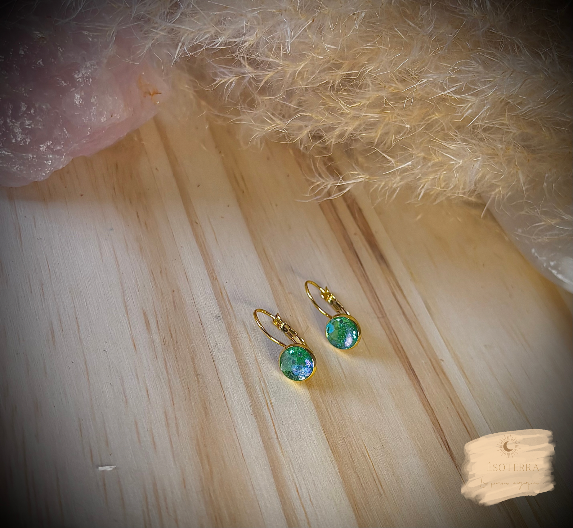 Boucles d'oreilles fait main en résine Epoxy couleur Doré en Acier inoxydable.