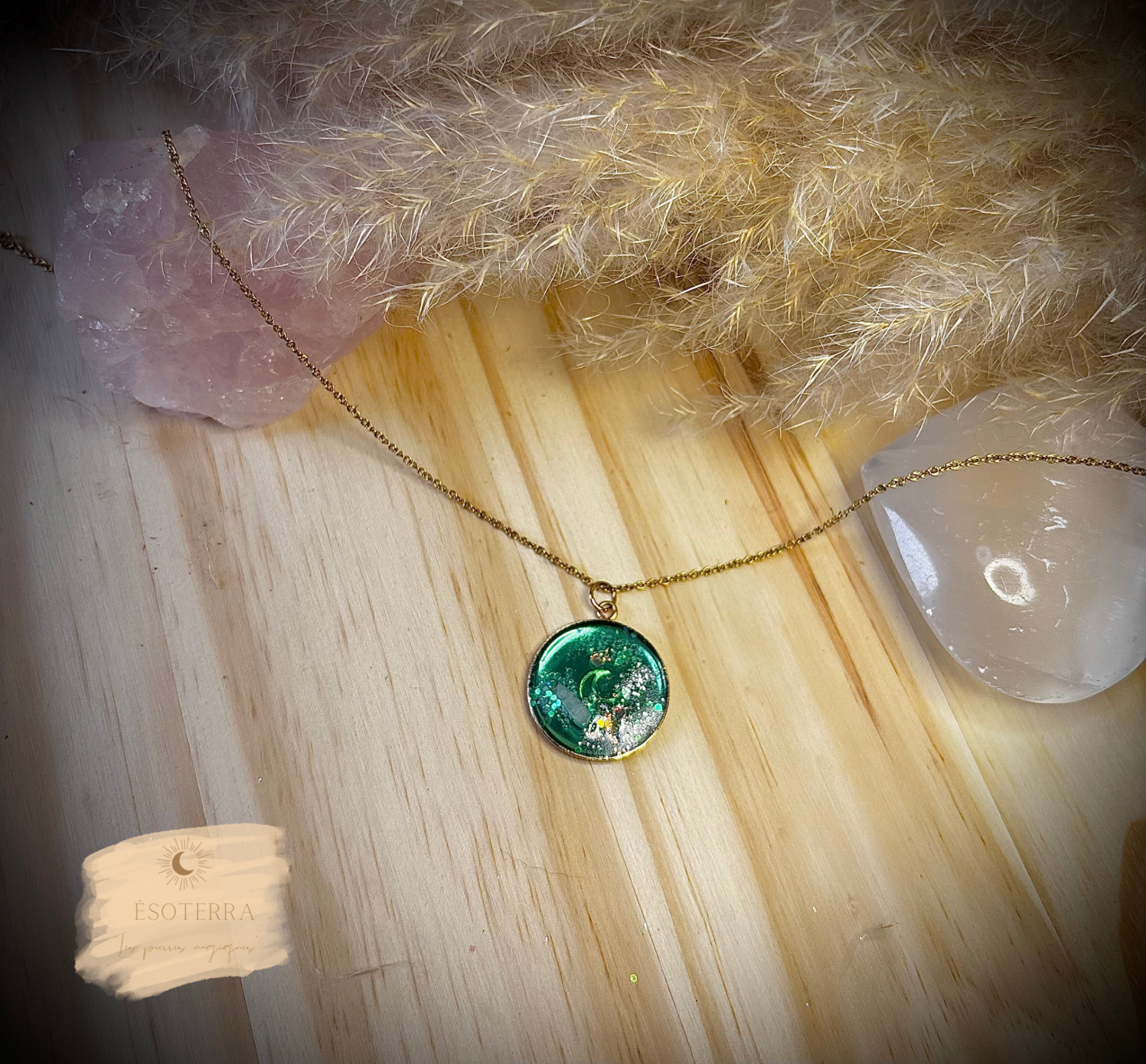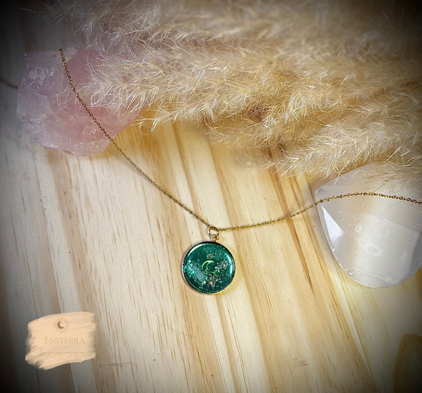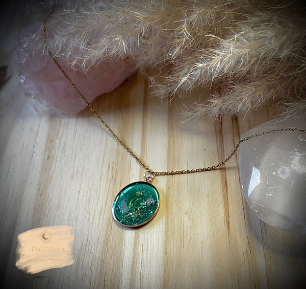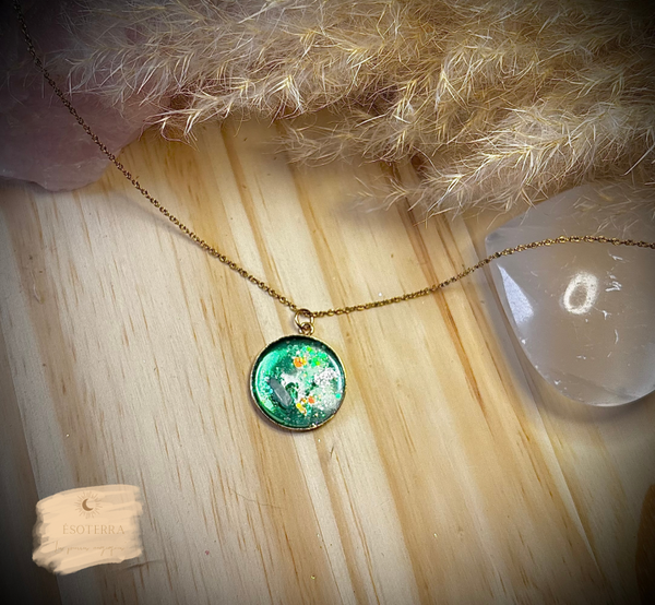 Pendentif fait main en résine Epoxy couleur Doré en Acier inoxydable.