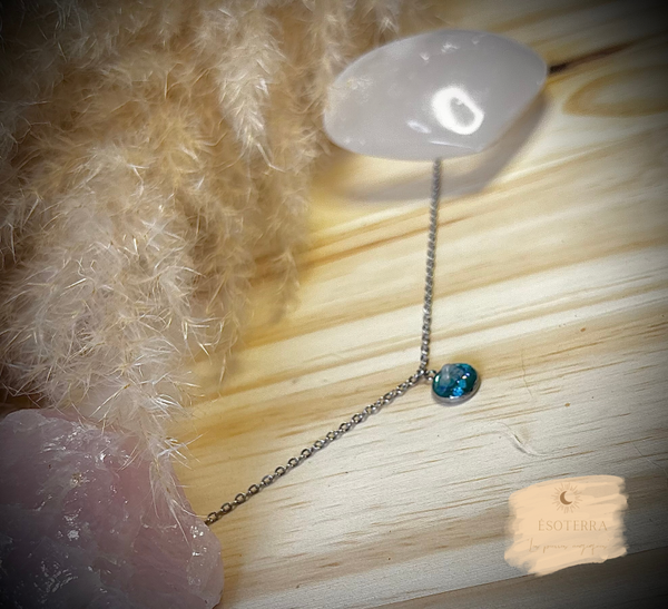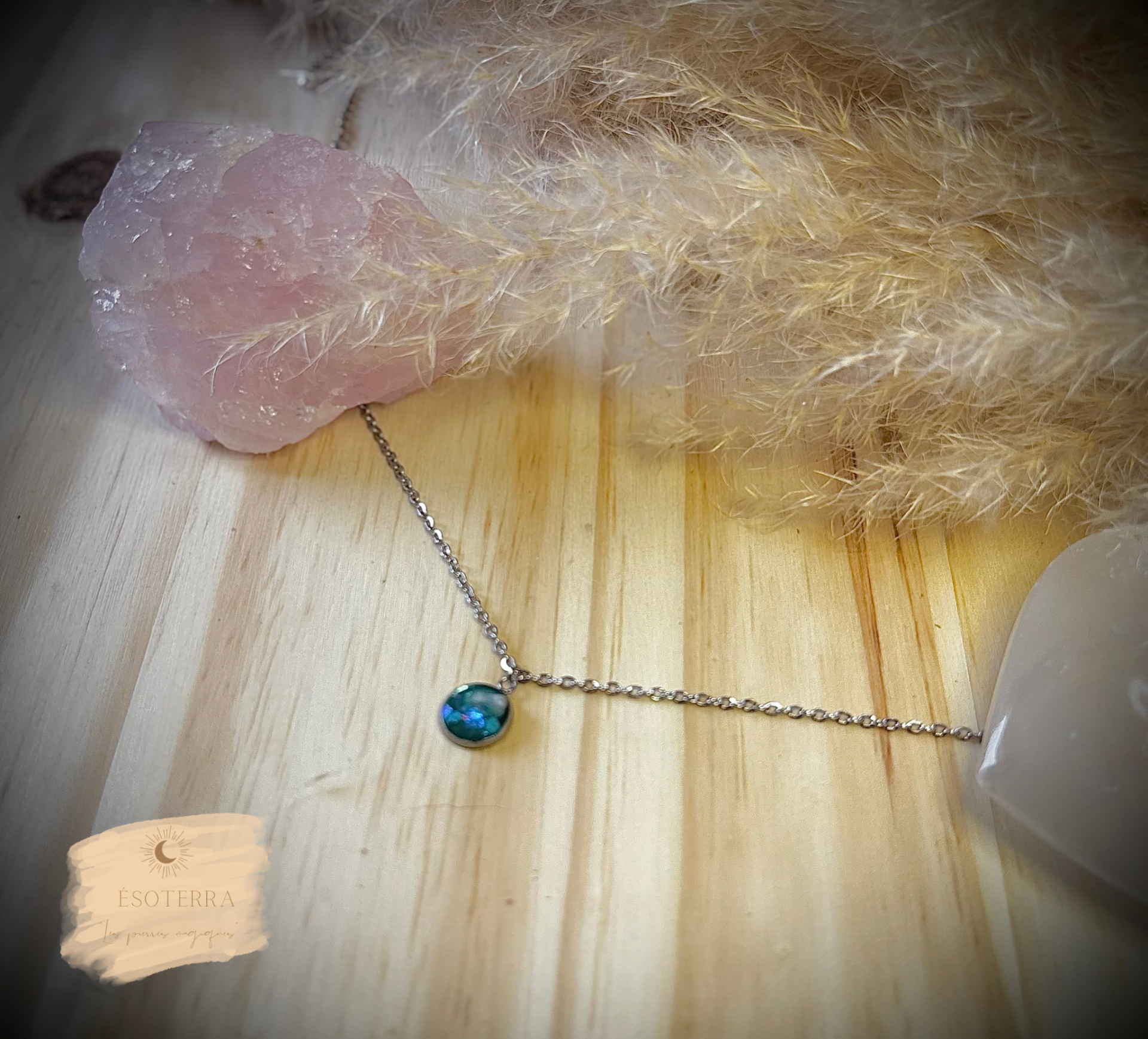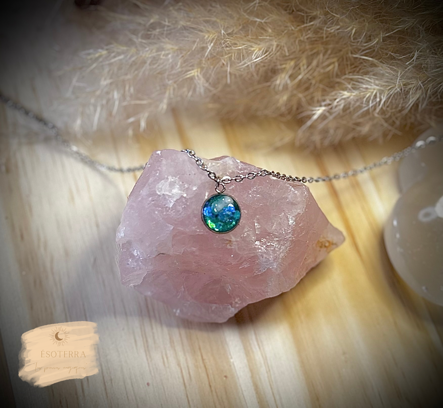 Pendentif fait main en résine Epoxy couleur Argenté en Acier inoxydable.