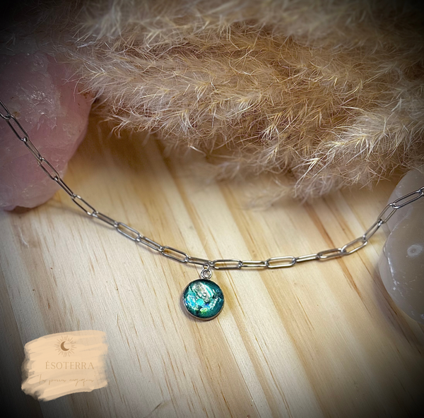 Pendentif fait main en résine Epoxy couleur Argenté en Acier inoxydable.