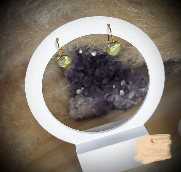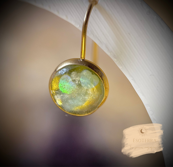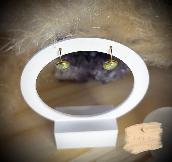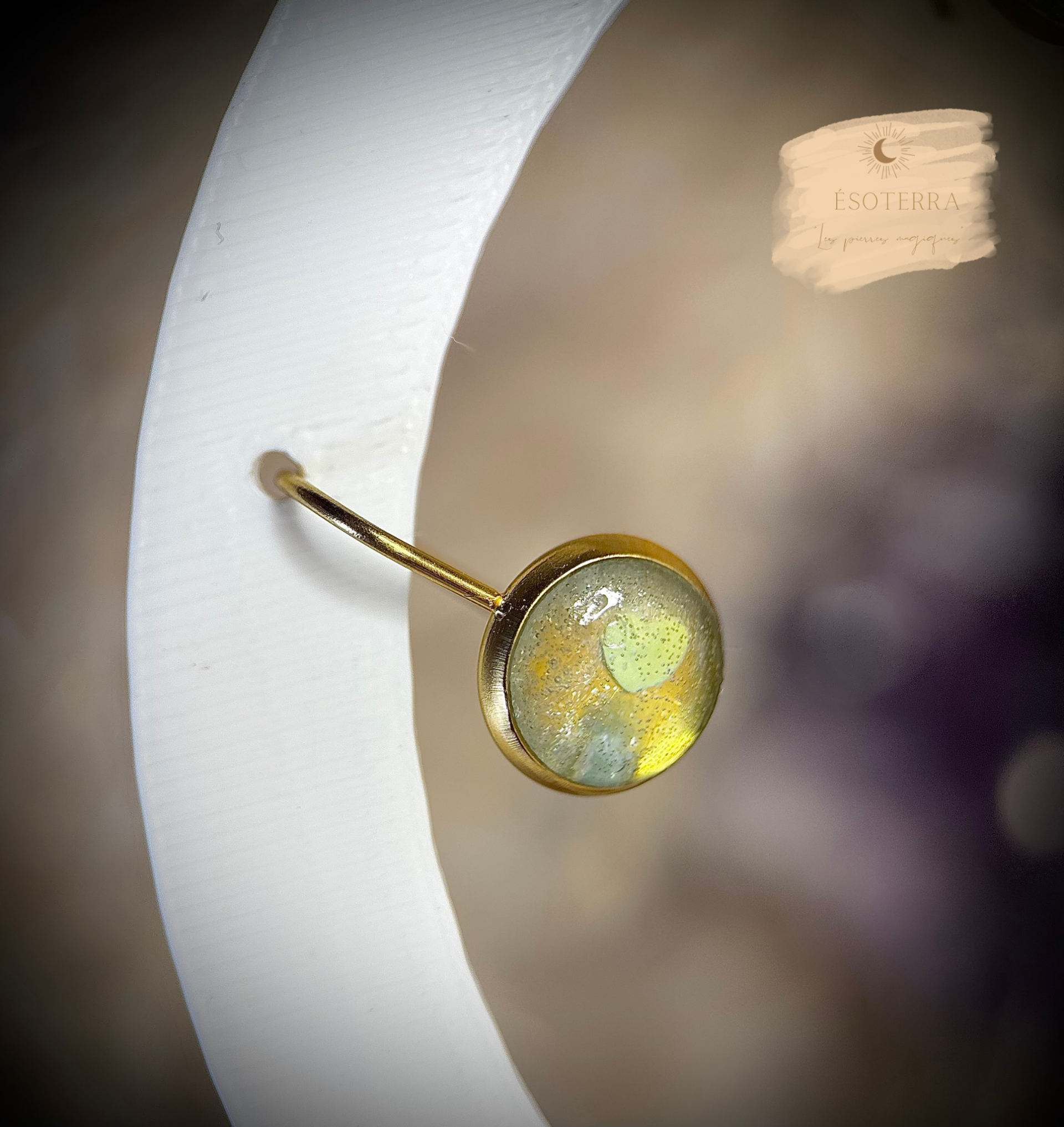 Boucles d'oreilles fait main en résine époxy couleur Dorée en Acier inoxydable.