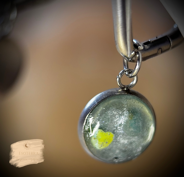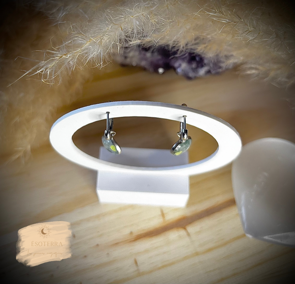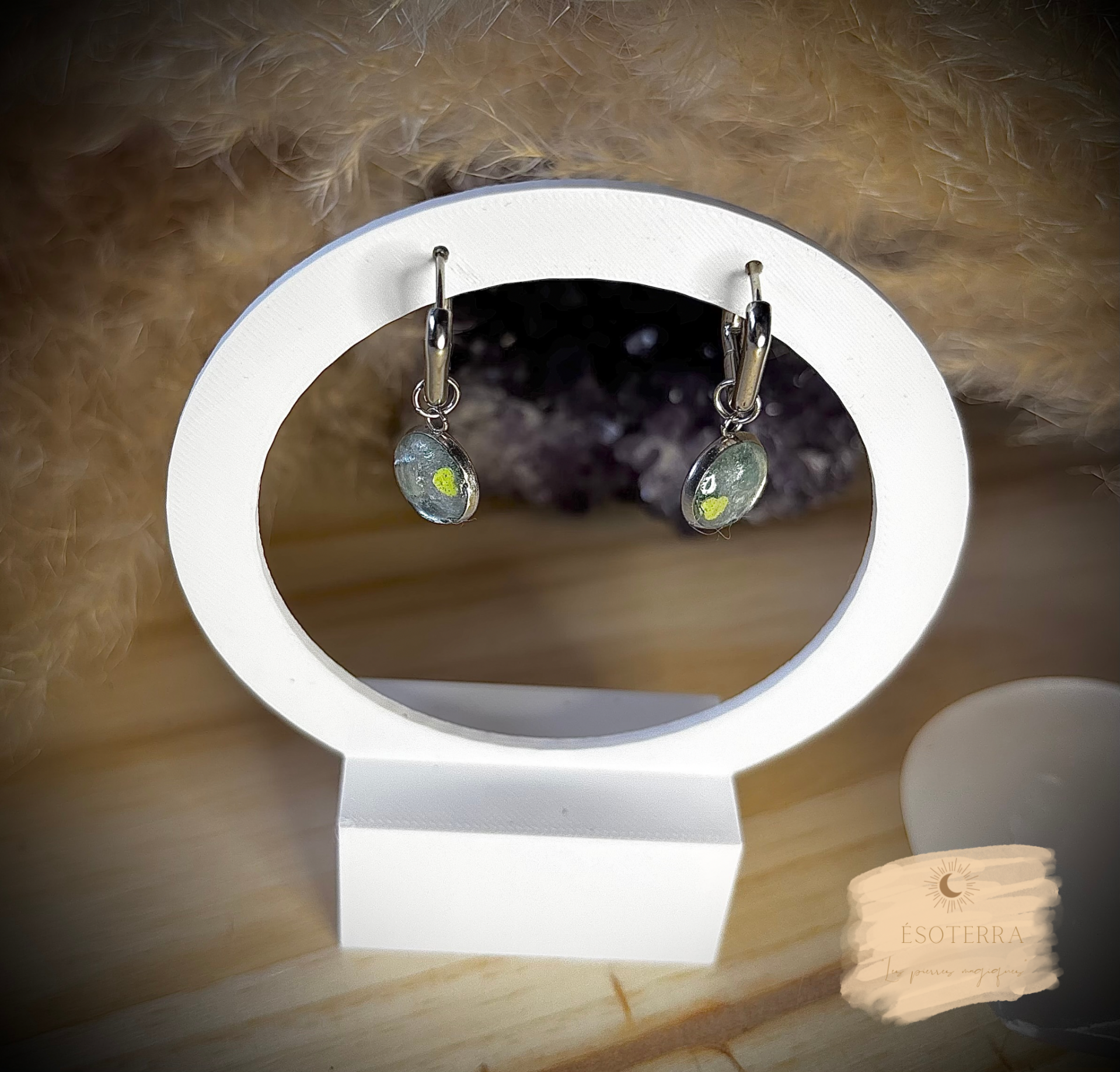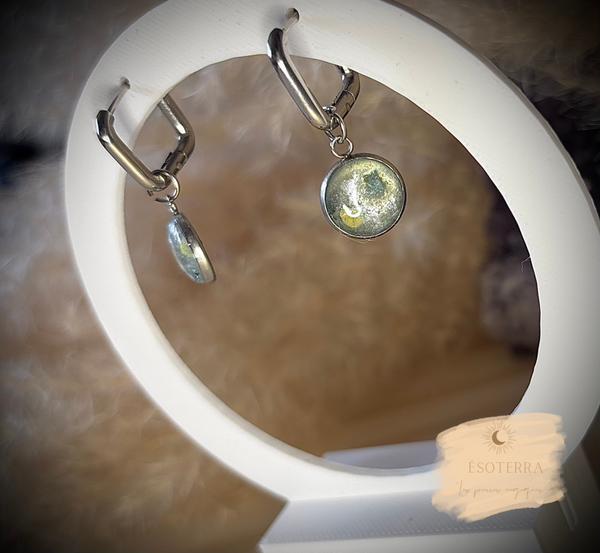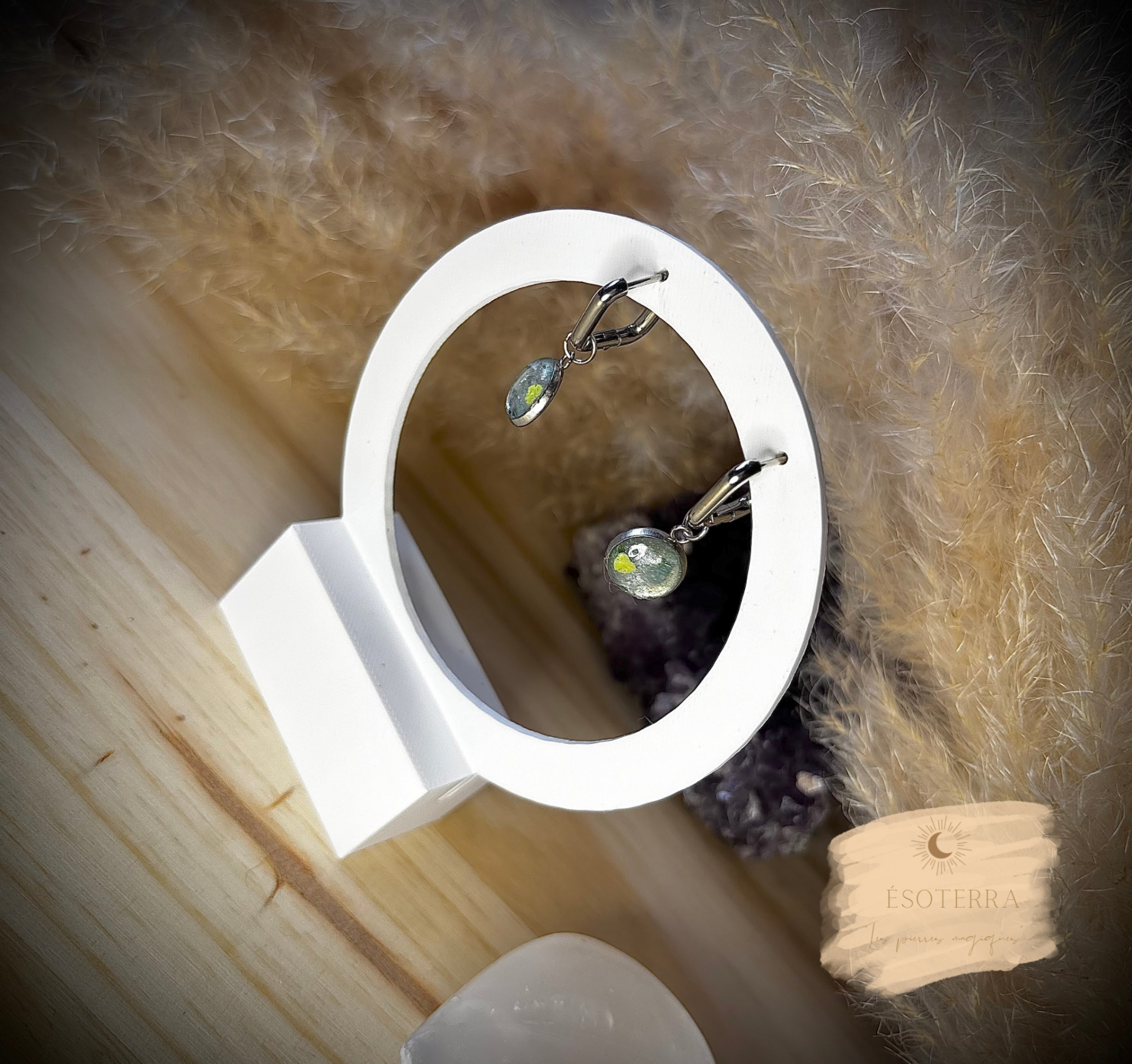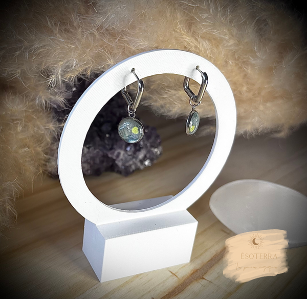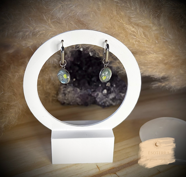 Boucles d'oreilles fait main en résine époxy avec créoles couleur Argenté en Acier inoxydable.