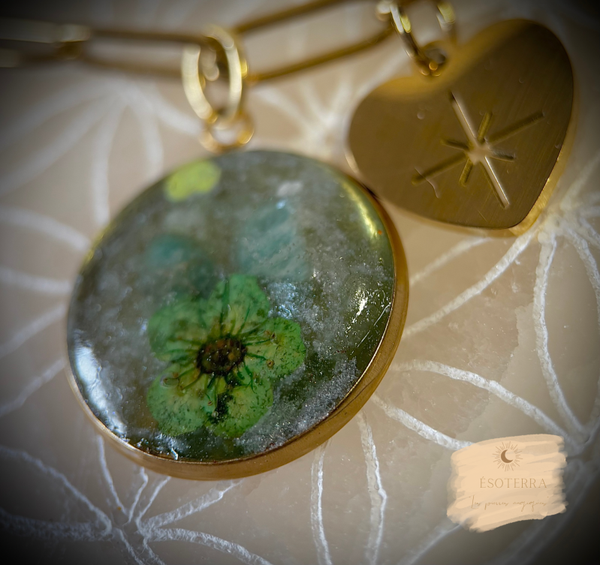 Pendentif fait main en résine époxy couleur Dorée en Acier inoxydable.