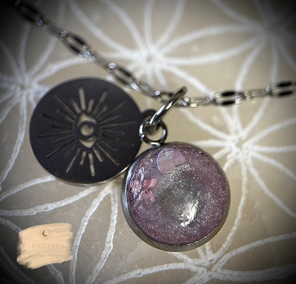 Pendentif fait main en résine époxy couleur Argenté en Acier inoxydable.