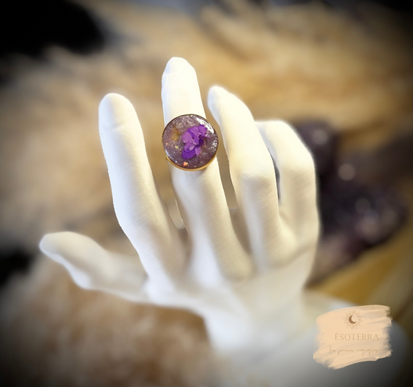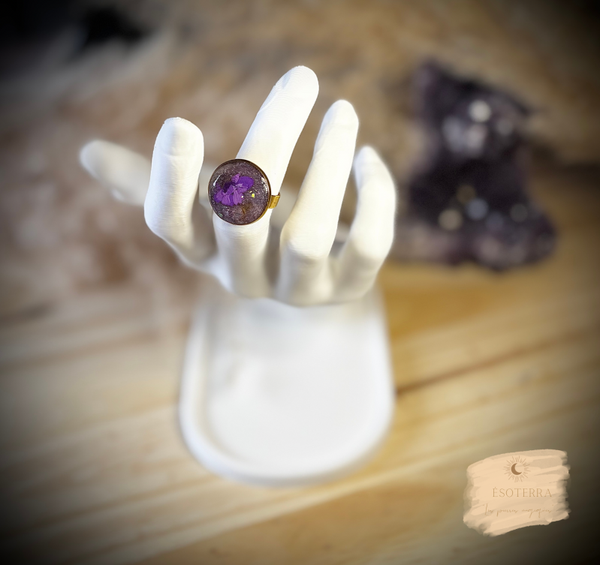 Bague fait main en résine époxy couleur Dorée en Acier inoxydable.