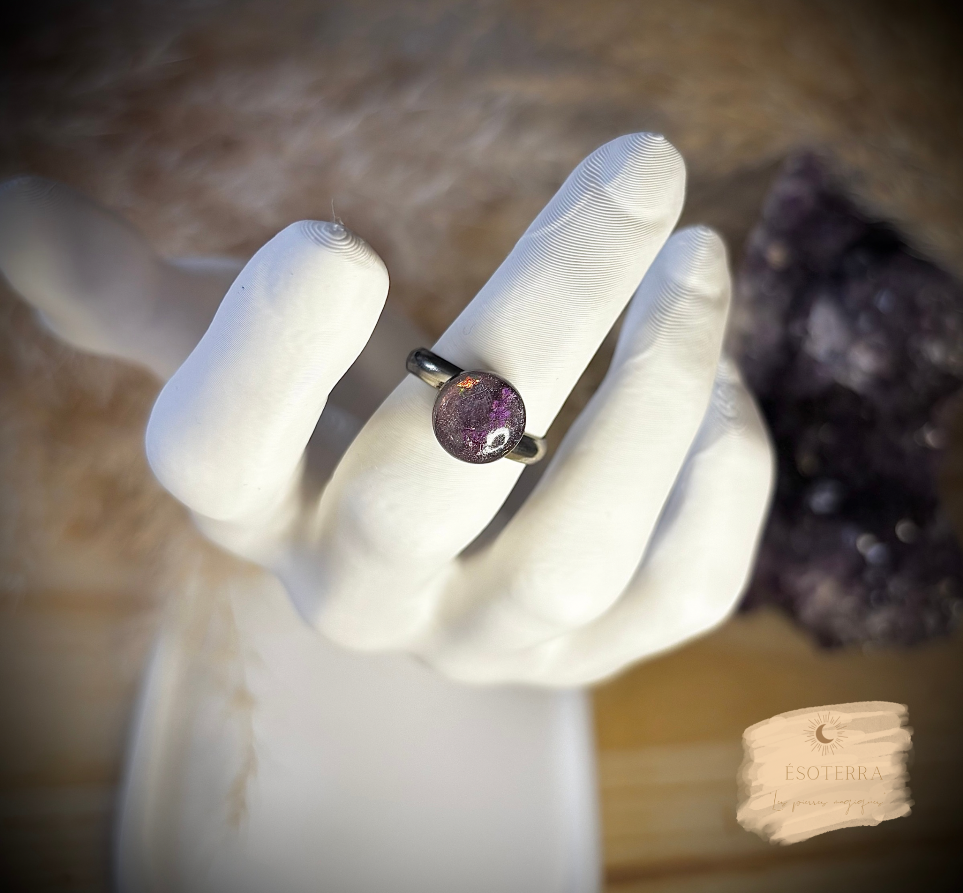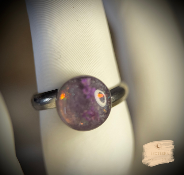 Bague fait main en résine époxy couleur Argenté en Acier inoxydable.