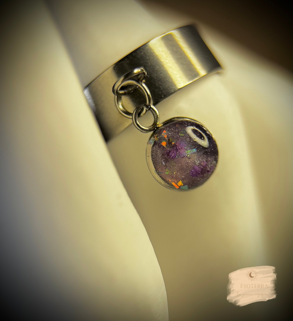 Bague fait main en résine époxy couleur Argenté en Acier inoxydable.