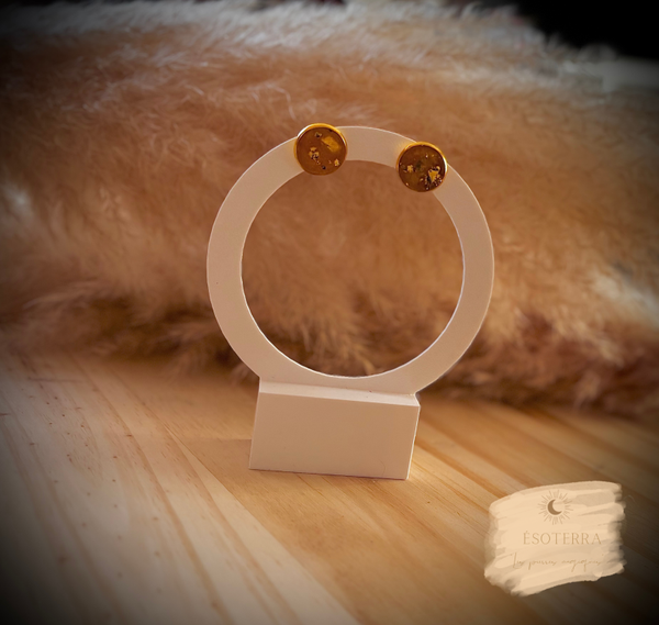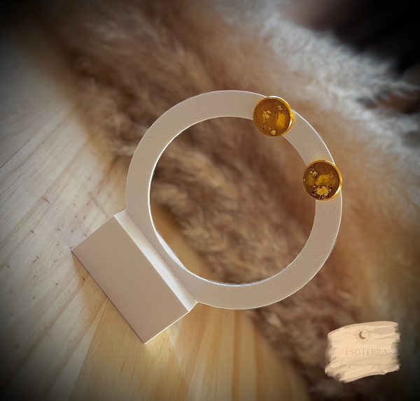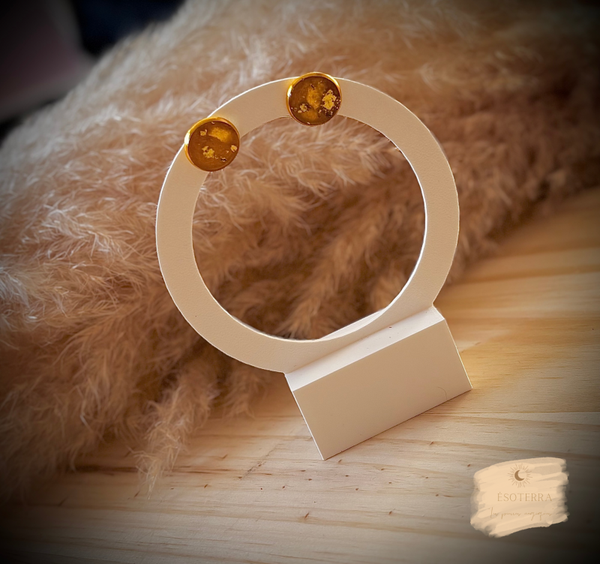 Boucles d'oreilles fait main en résine époxy couleur Dorée en Acier inoxydable.