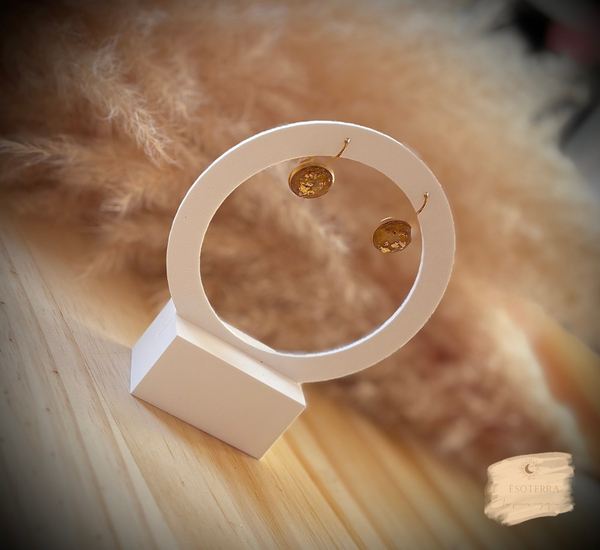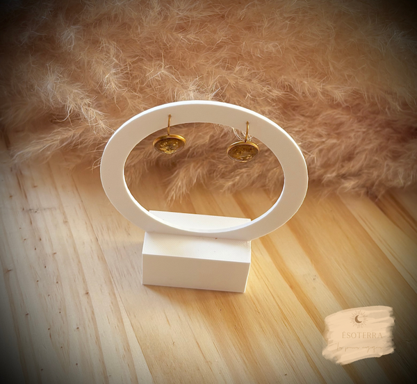 Boucles d'oreilles fait main en résine époxy couleur Dorée en Acier inoxydable.