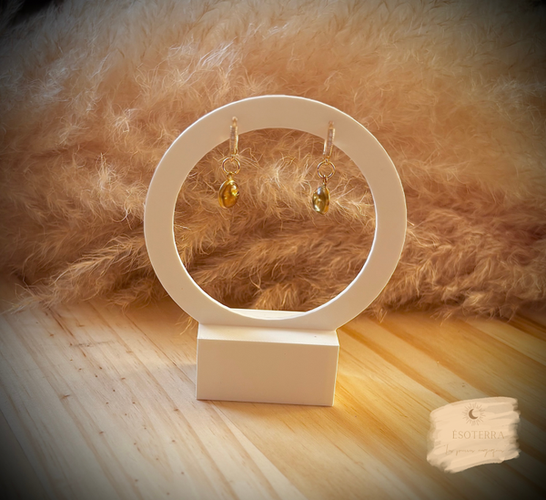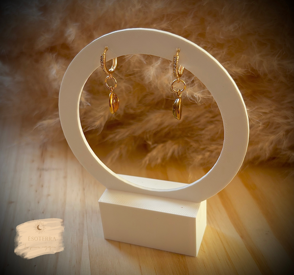 Boucles d'oreilles fait main en résine époxy avec créoles couleur Dorée en Acier inoxydable.