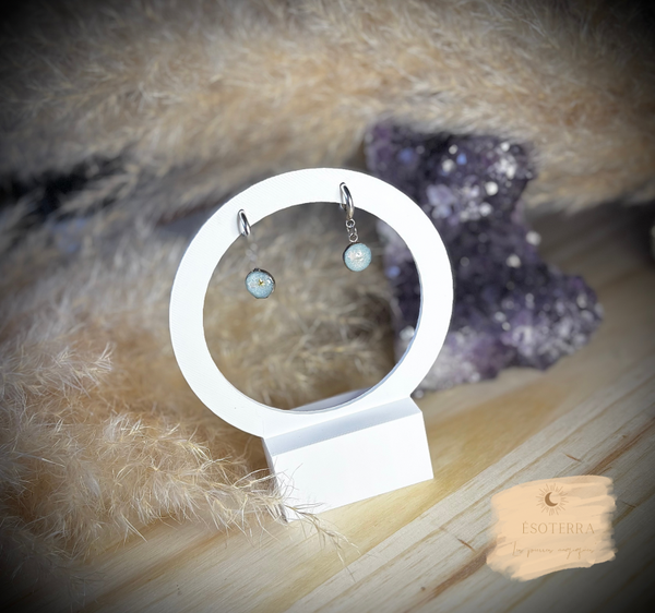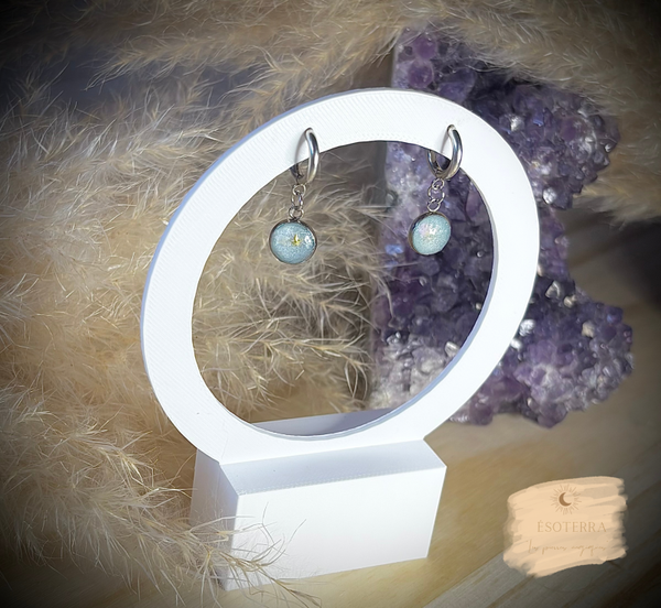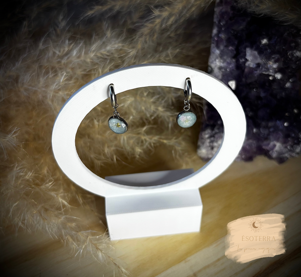 Boucles d'oreilles fait main en résine époxy avec créoles couleur Argenté en Acier inoxydable.
