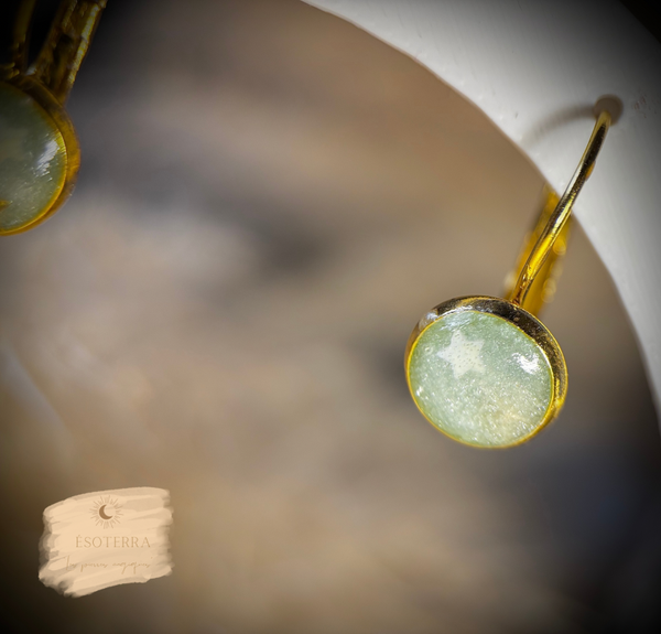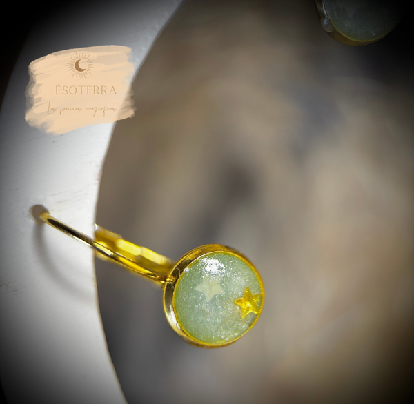 Boucles d'oreilles fait main en résine époxy couleur Dorée en Acier inoxydable.
