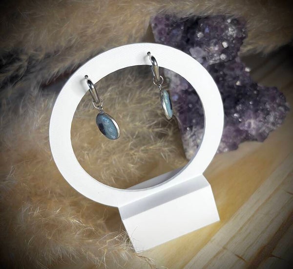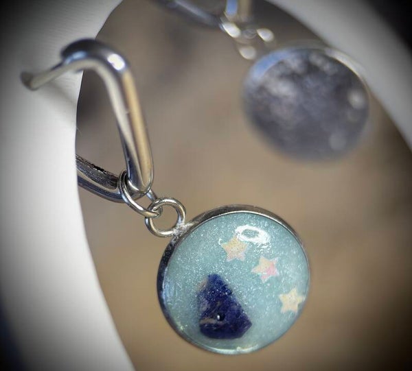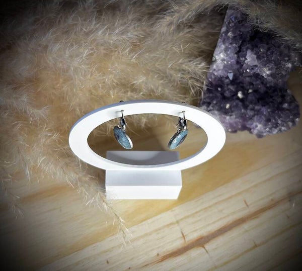 Boucles d'oreilles fait main en résine époxy avec créoles couleur Argenté en Acier inoxydable.