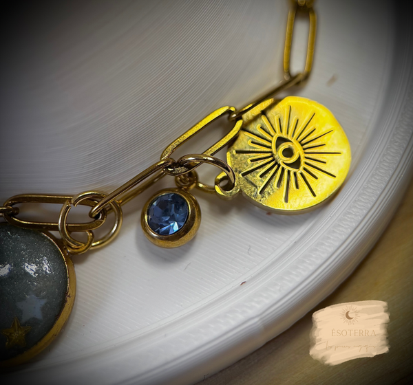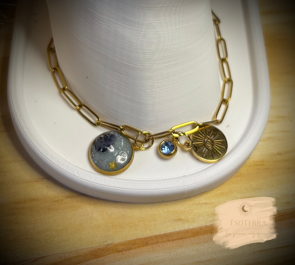 Bracelet fait main en résine époxy couleur Dorée en Acier inoxydable.