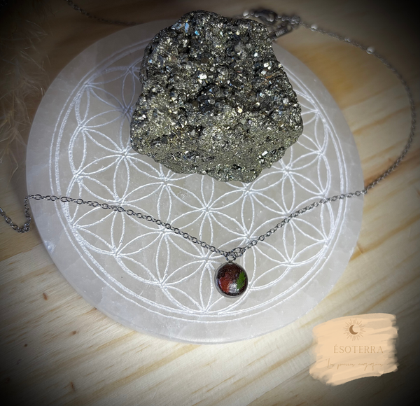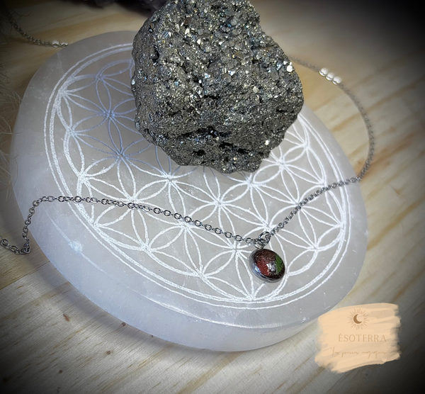 Pendentif fait main en résine époxy couleur Argenté en Acier inoxydable.