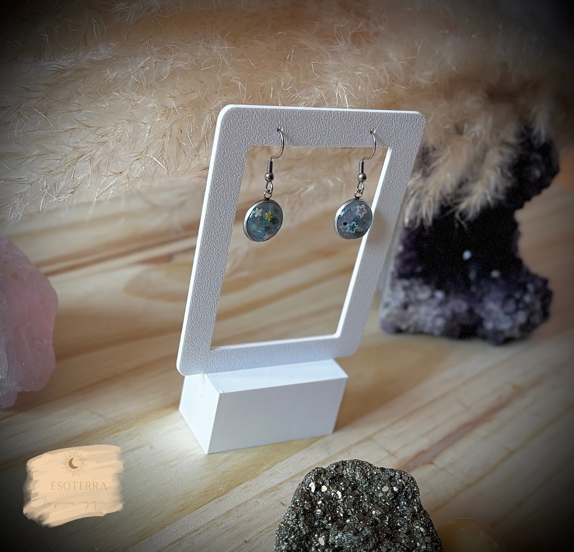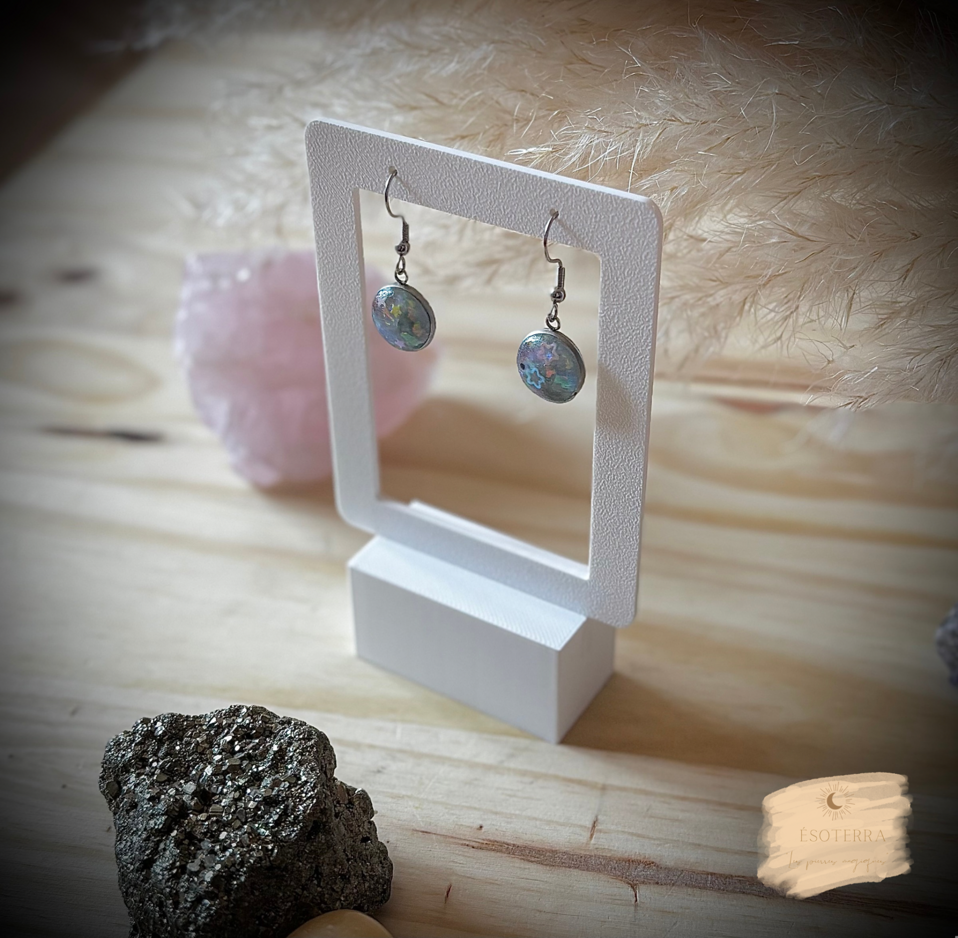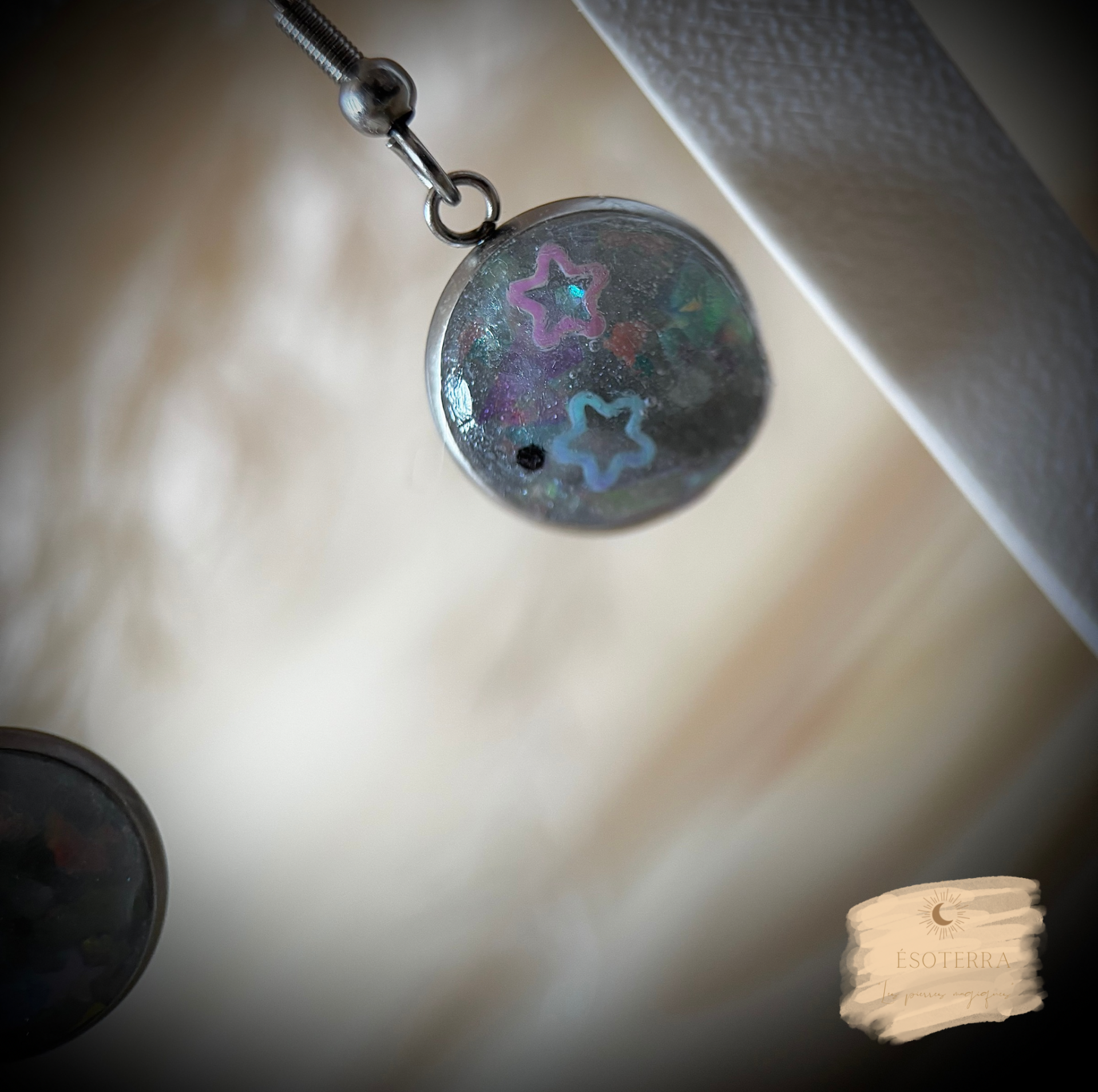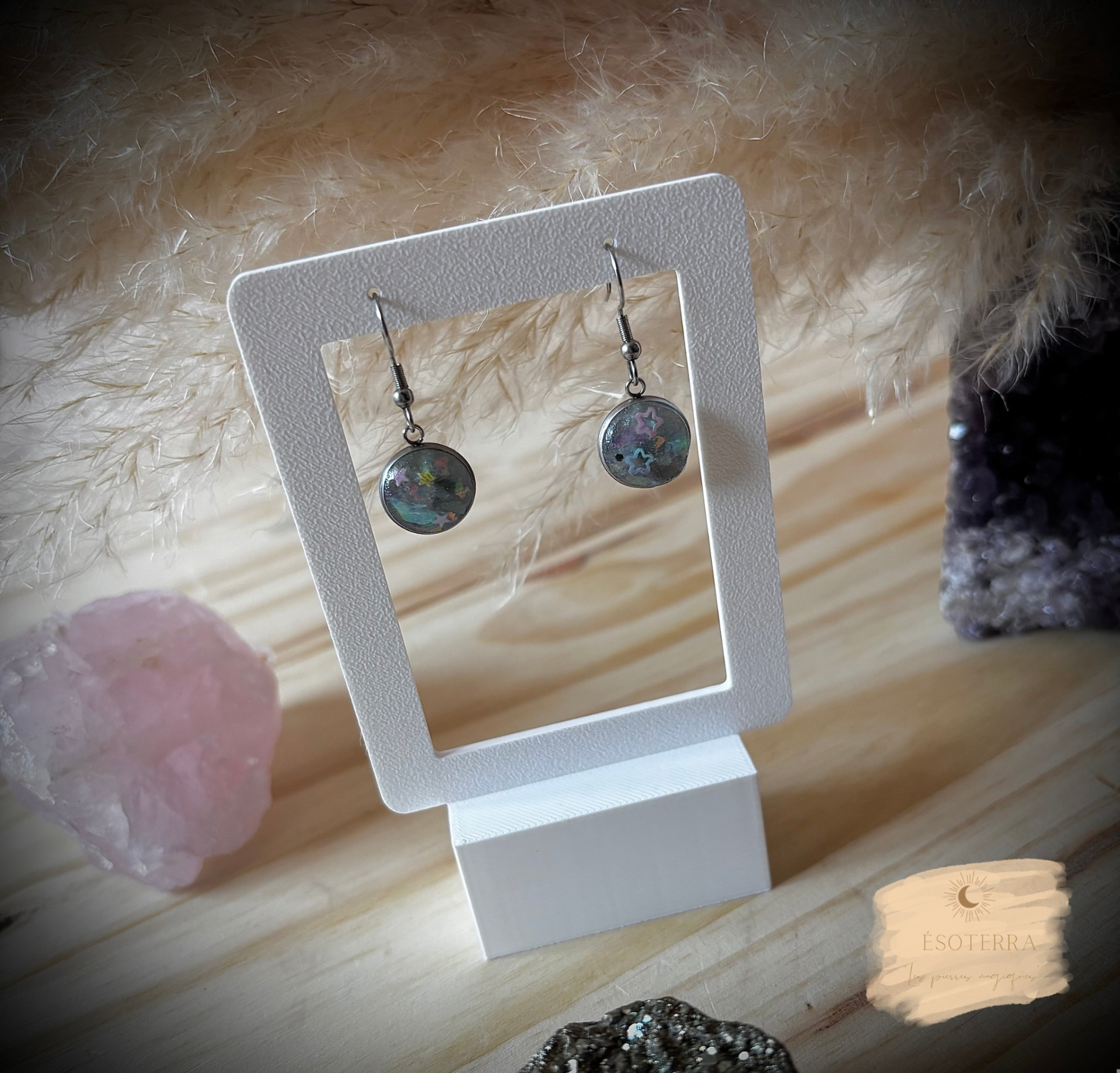 Boucles d'oreilles fait main en résine époxy couleur Argentée en Acier inoxydable.