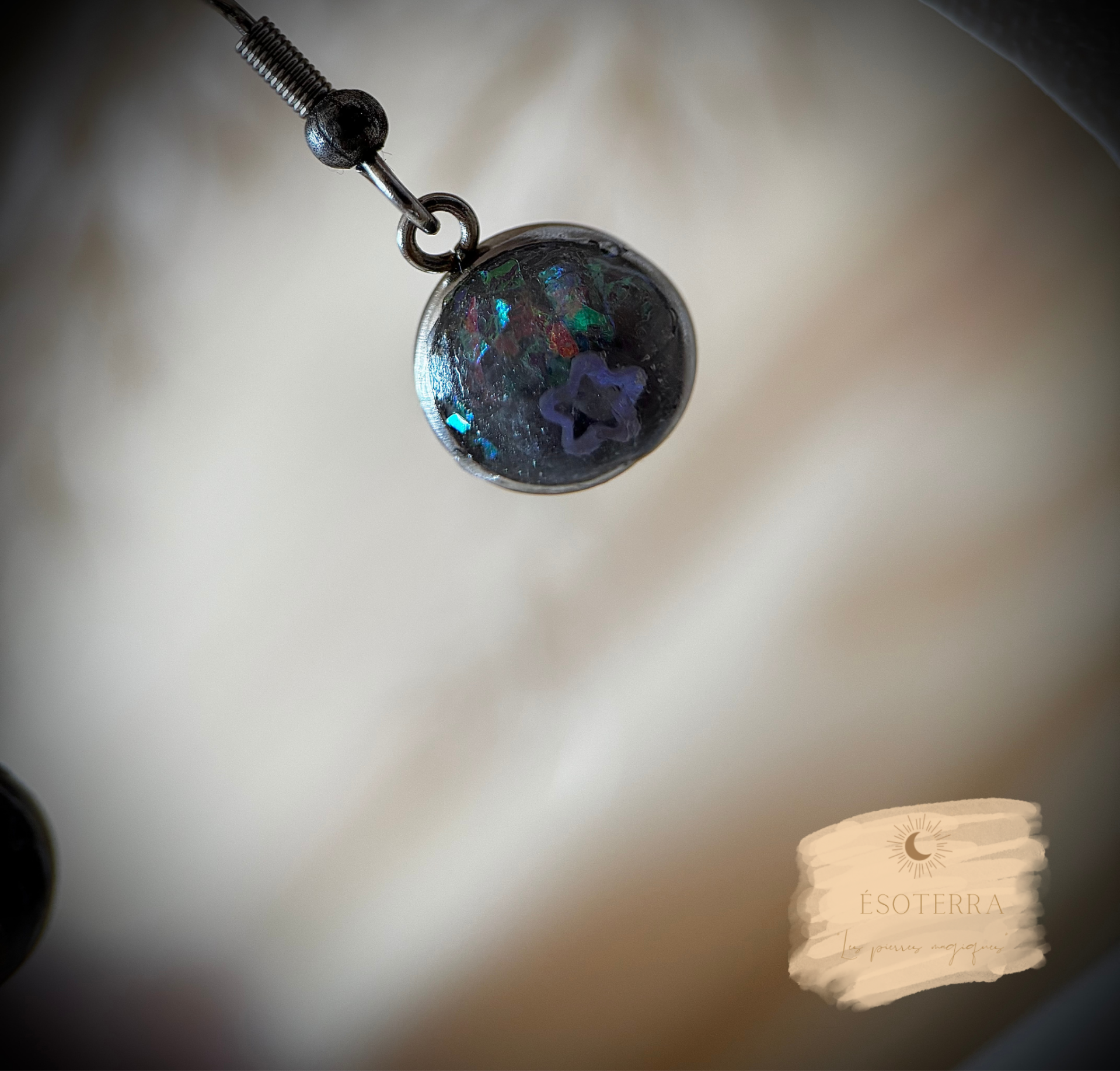 Boucles d'oreilles fait main en résine époxy couleur Argentée en Acier inoxydable.
