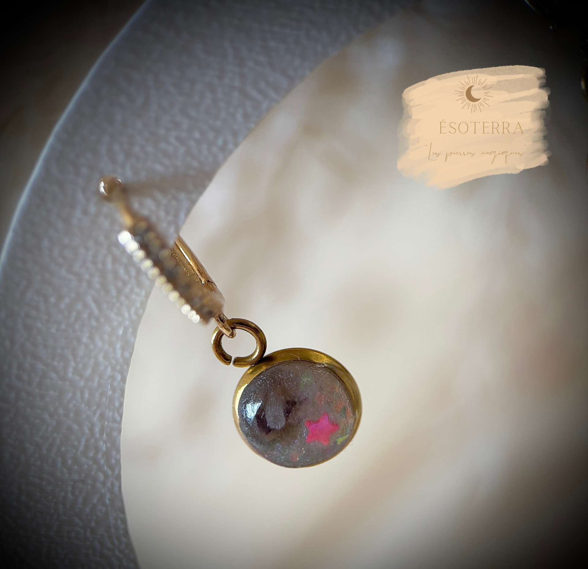 Dans le bijou, vous y trouverez une ou plusieurs pierre(s) de Fluorite arc-en-ciel 🌈, de la pourdre de Mica nacrée blanche, des étoiles multicolores rapellant l'arc-en-ciel et la guérison & des feuilles Foil transparentes colorées de toutes les couleurs douces et subtiles ( si la place le permet ), tout cela associés à la blessure concernant le bijou.