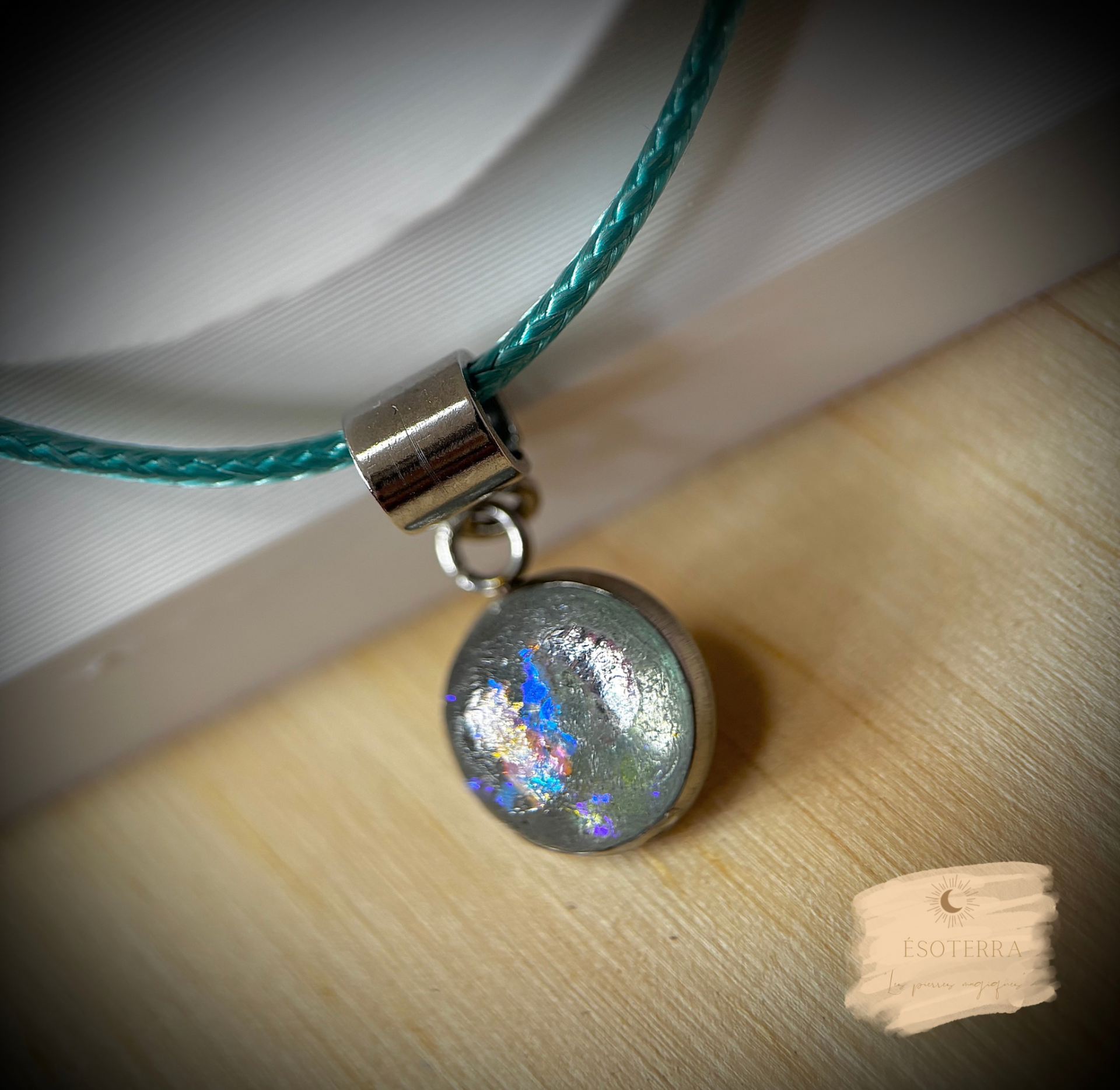 Dans le BIJOU Petit Garçon, vous y trouverez des nuances de bleu ciel, de la poudre de Mica Argenté pour l'apaisement, la confiance et la sérénité, de la paillette holographique, pierre d'améthyste, quartz rose ou sodalite, une ou des petite(s) lune(s) argenté ou doré en fonction du support.