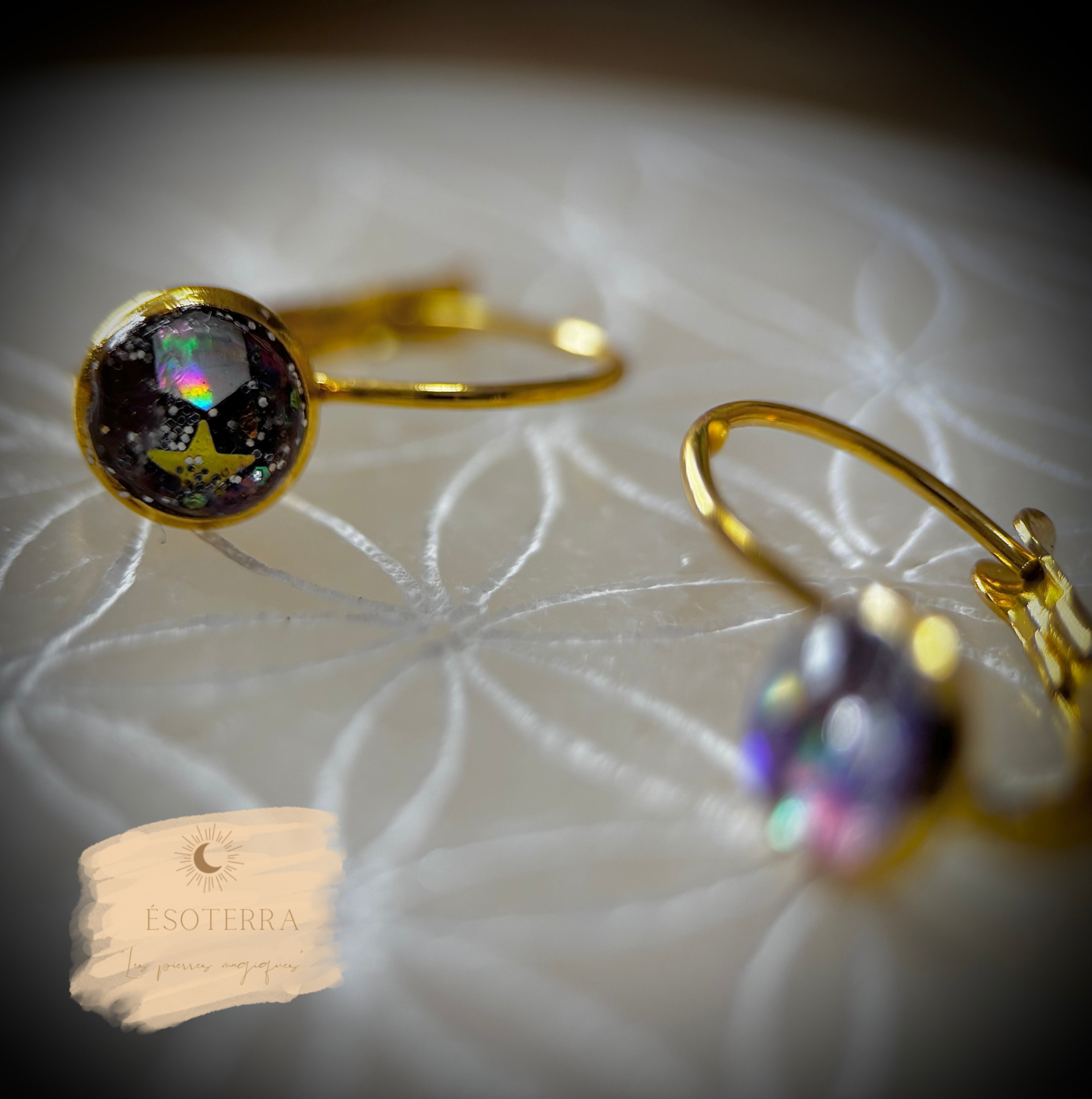 Boucles d'oreilles fait main en résine Epoxy couleur Dorée en Acier inoxydable.