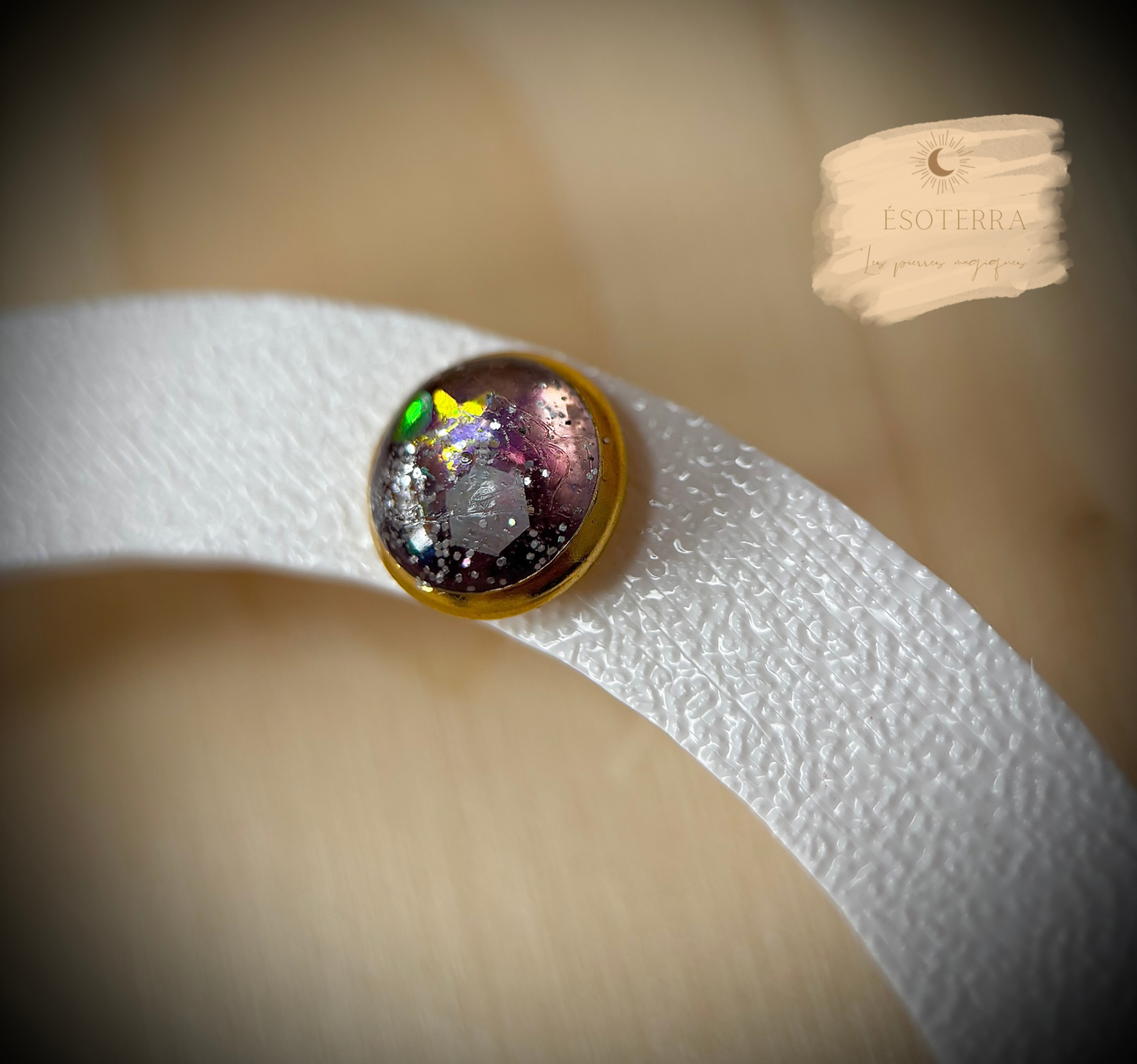Dans LE BIJOU, vous y trouverez une ou plusieurs pierres de "Sodalite", "Améthyste" et/ou "Fluorite", des paillettes, une couleur translucide, des fleurs séchées ou objets miniatures si la place le permet, tout cela associés au Chakra correspondant au bijou.