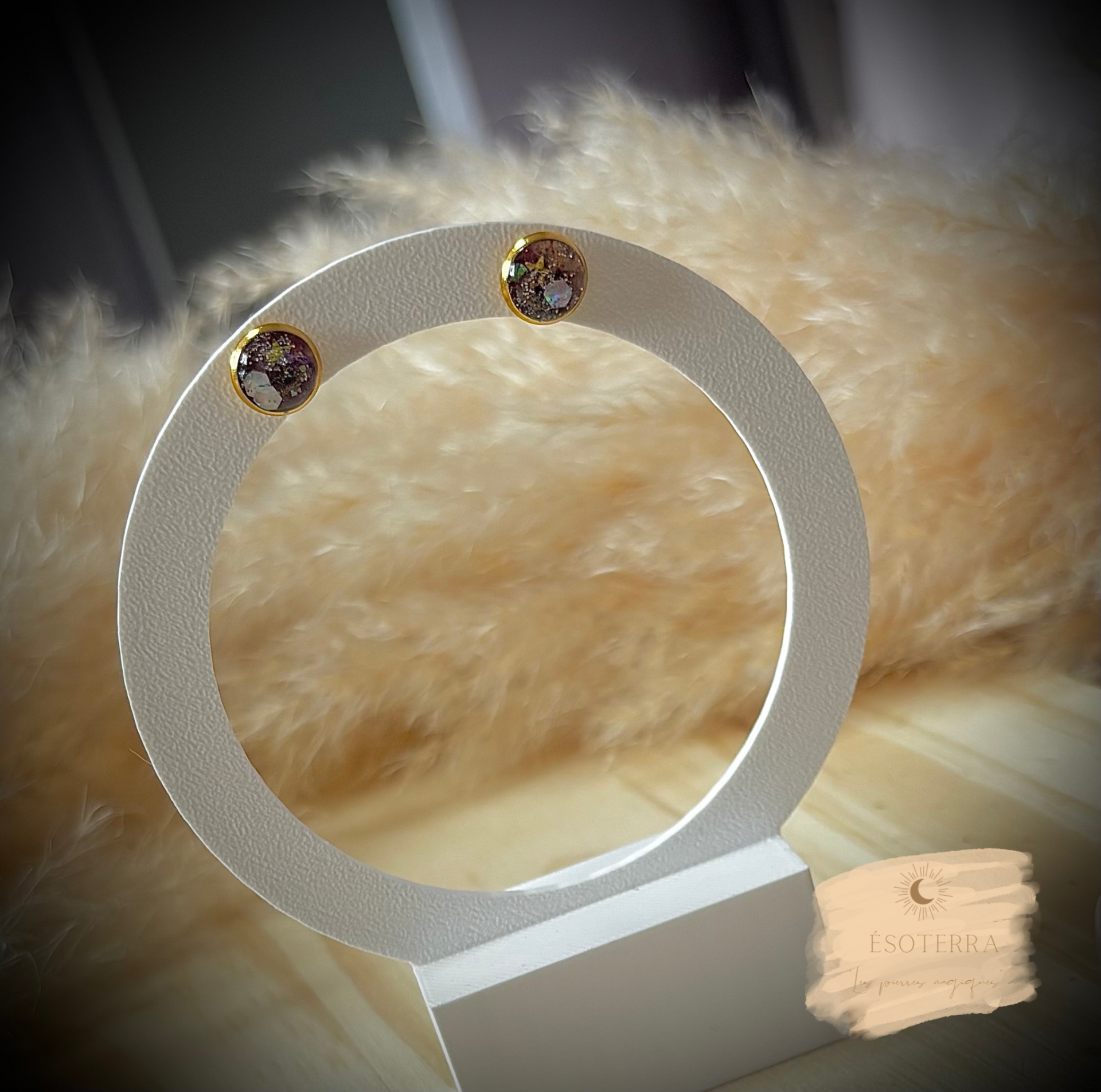 Boucles d'oreilles fait main en résine Epoxy couleur Dorée en Acier inoxydable.