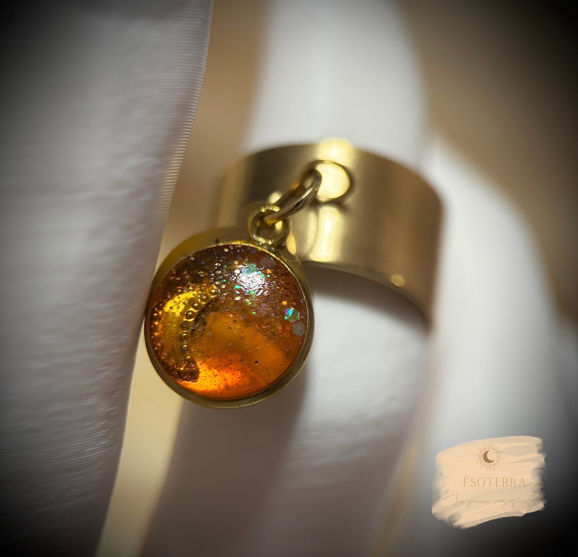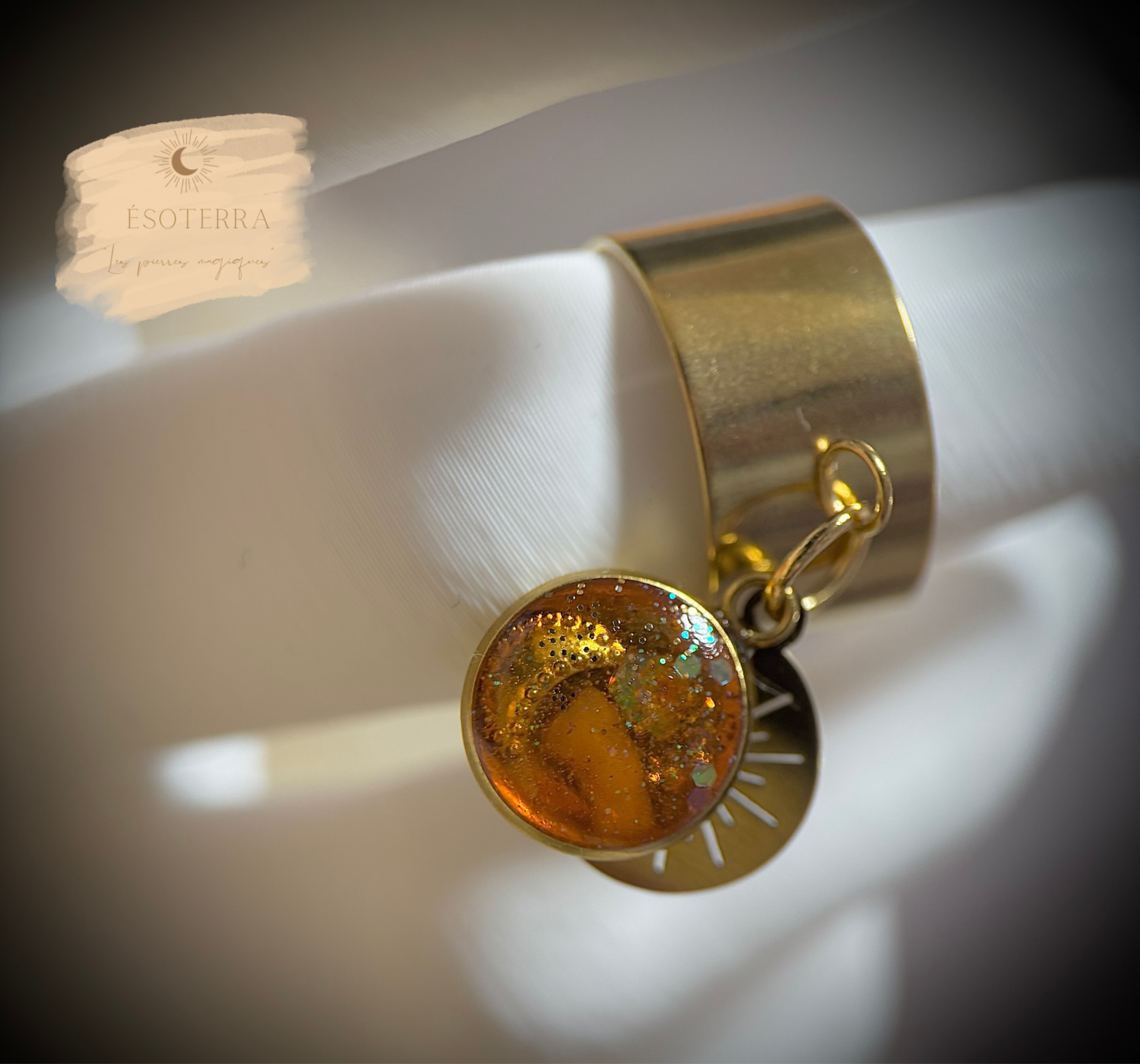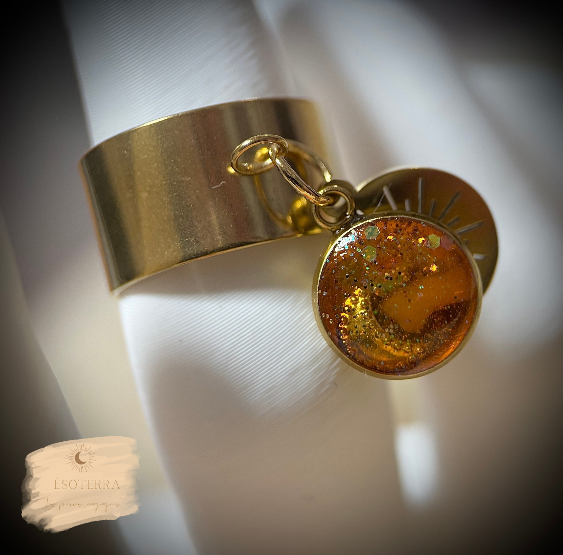 Bague réglable fait main en résine Epoxy couleur Dorée en Acier inoxydable.