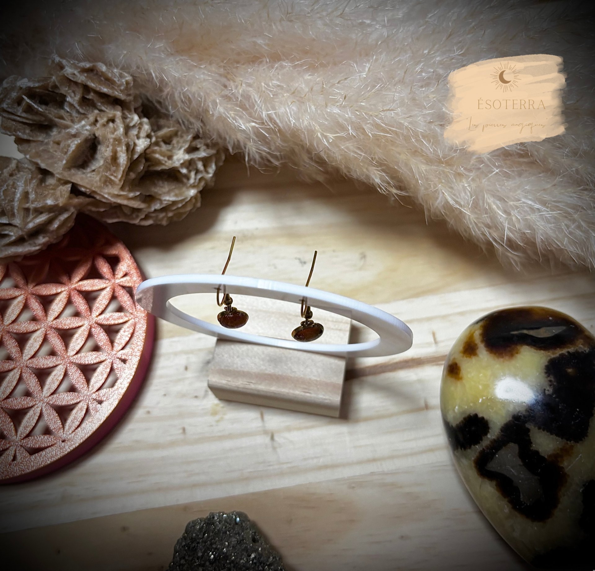 Boucles d'oreilles fait main en résine Epoxy couleur Dorée en Acier inoxydable.